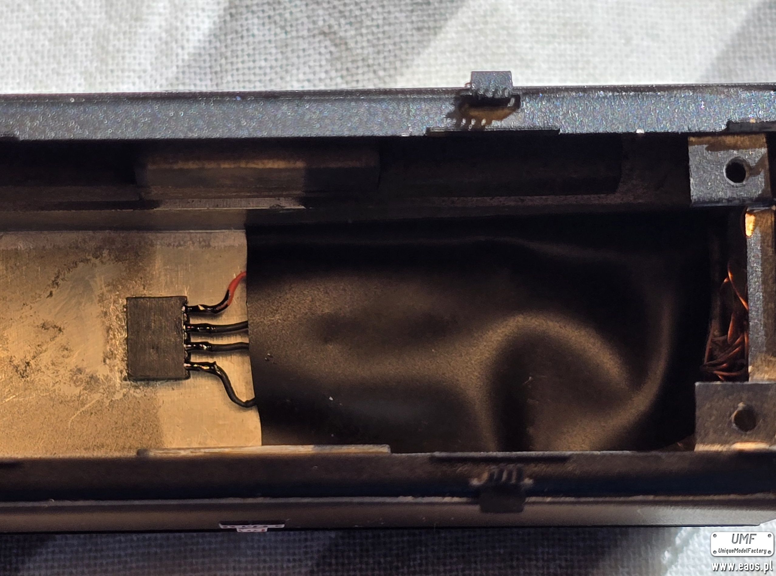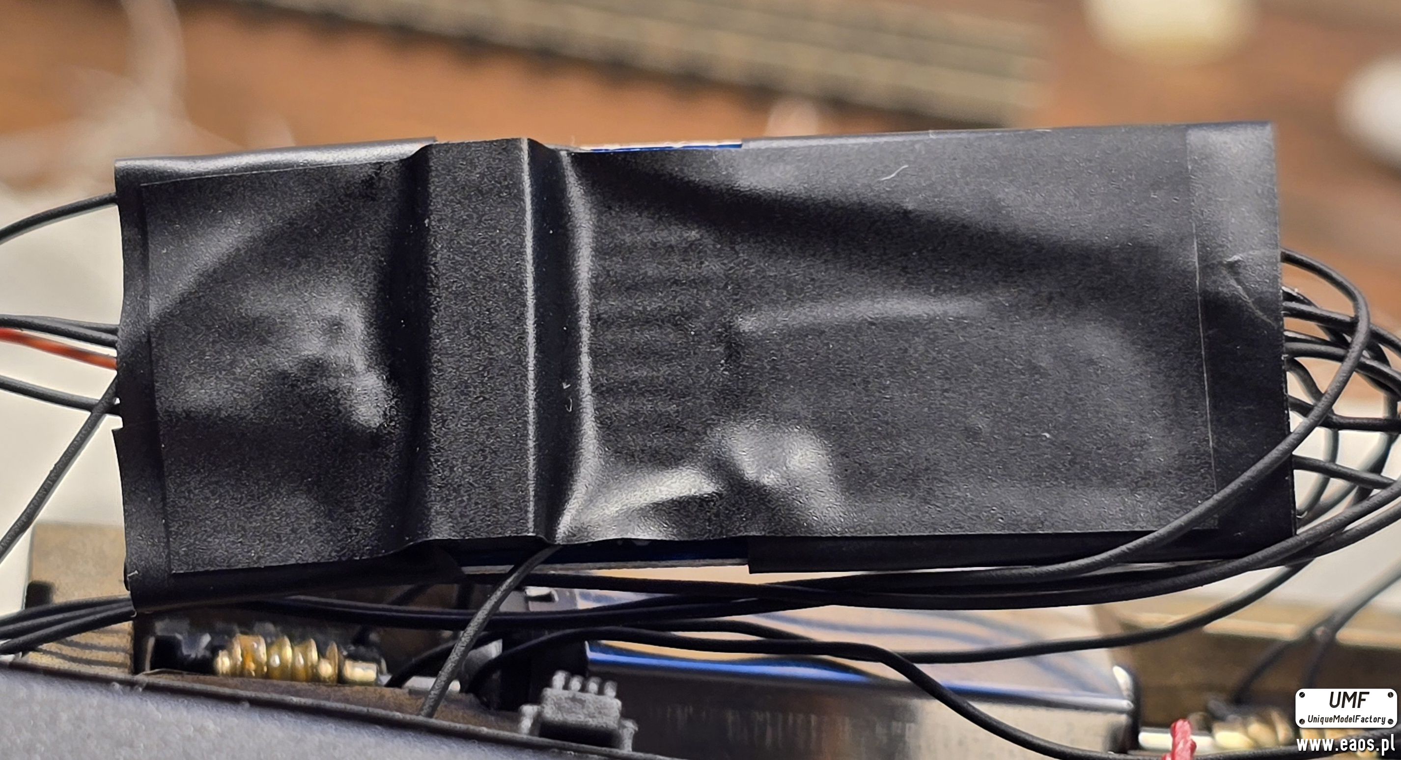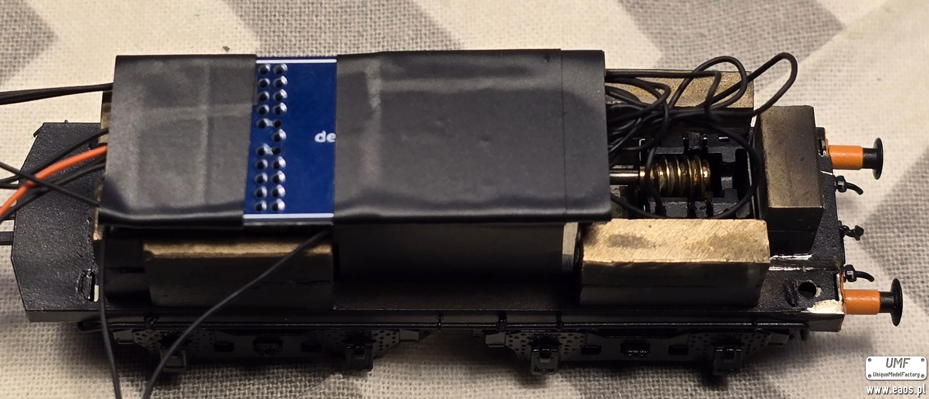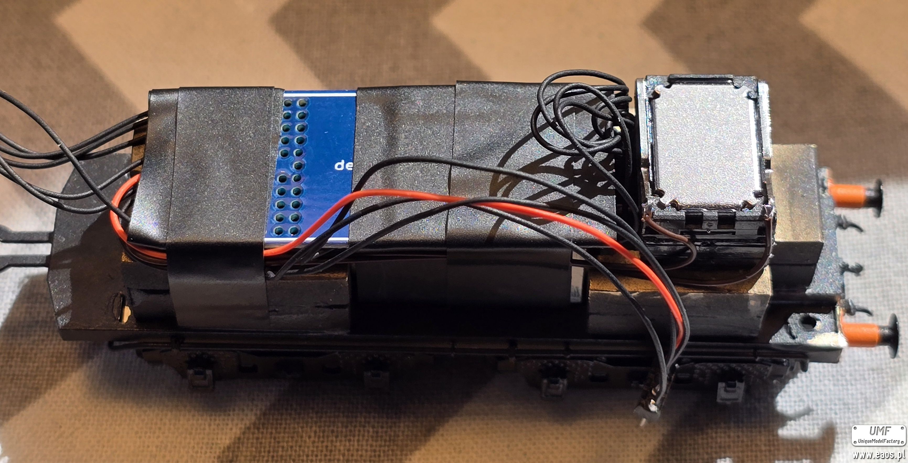 Gotowy tender z głośnikiem prezentuje się tak. Głośnik wylądował w tendrze zamiast w kotle.