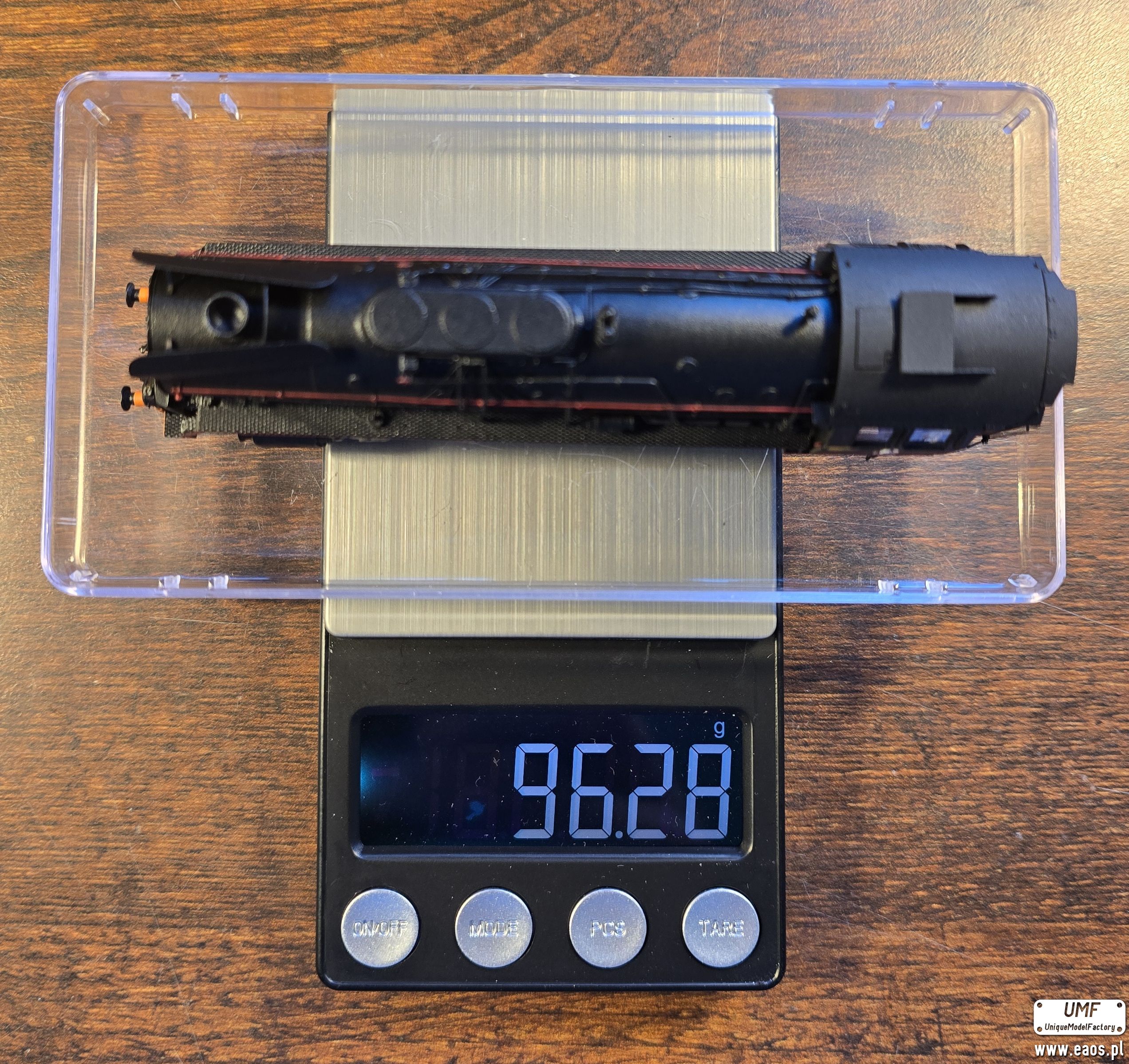 Wyszedł kawał parowozu i tendra. Zestaw waży prawie 200gr.
