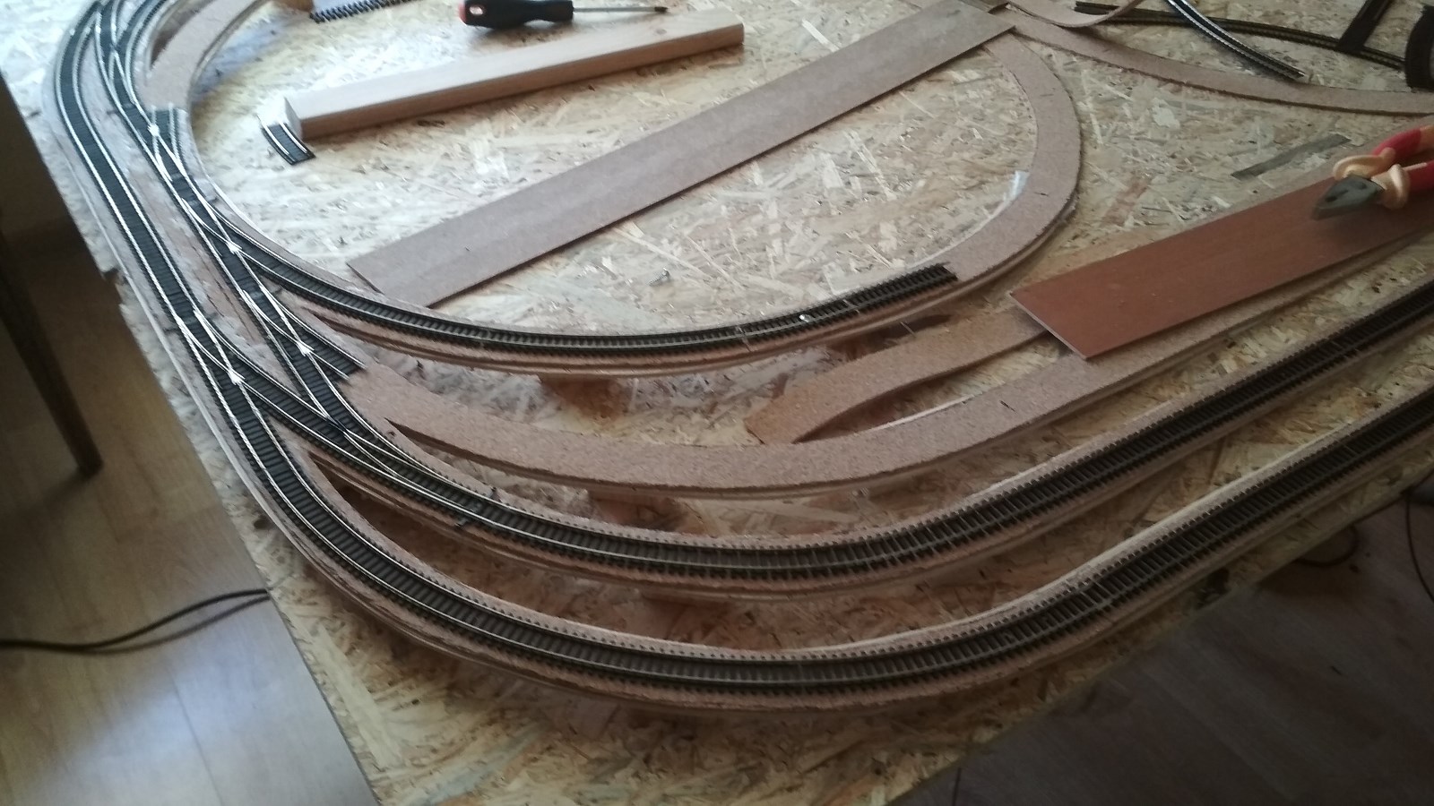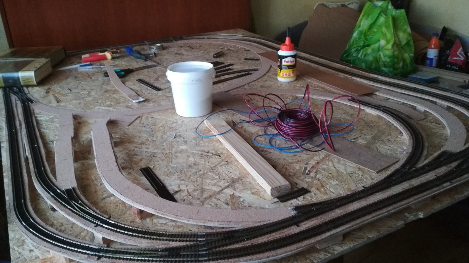 ...to może nie klej torów od razu na mocno, tylko zamocuj gwoździkami, tak byś mógł później poprawić ich ułożenie, gdy zlokalizujesz problematyczne miejsca.