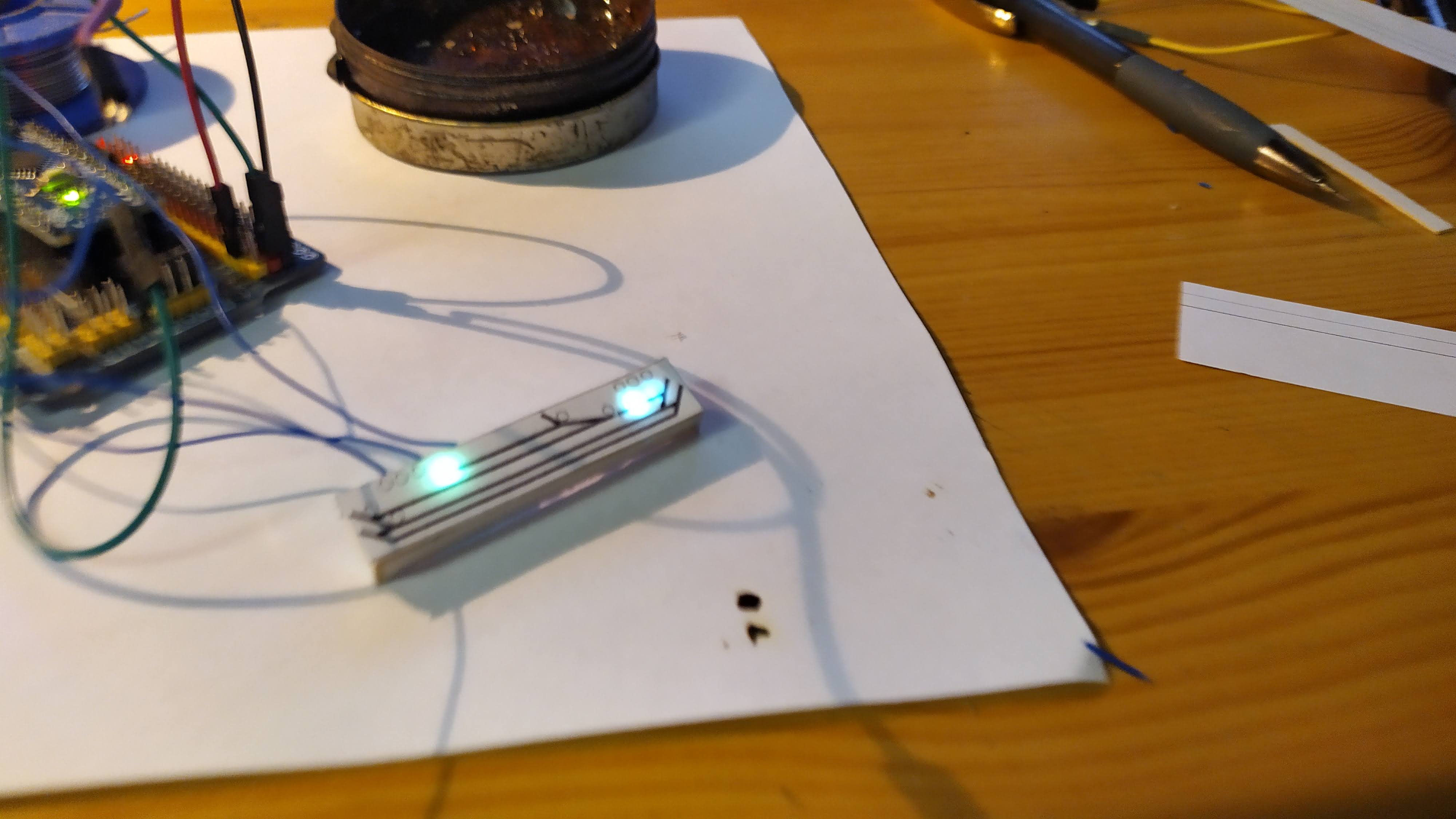 Przekonałem się do diod z pasków, w tym przypadku WS2812b. Nie dość, że kolorowe, to da się sterować dowolną ich ilością TYLKO jednym pinem procesora
