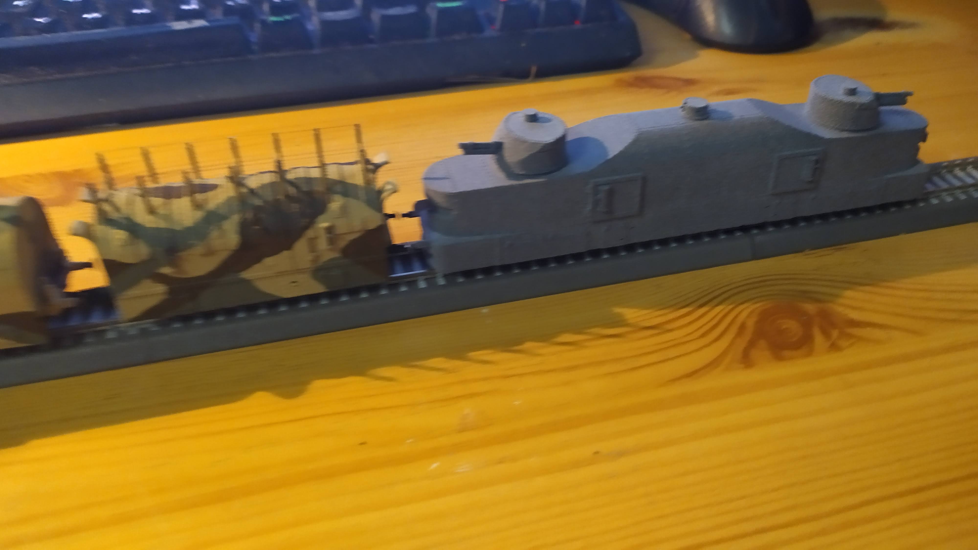 Ciąg dalszy liftingu pancernego z papieru na druk. Wyszło fajnie, więc tylko pomalować i skład gotowy. Bez sklejania, bez formowania, bez żadnego modelarstwa - po prostu druk wagonu artyleryjskiego w jednym kawałku, przy obracanych wieżach i wózkach
