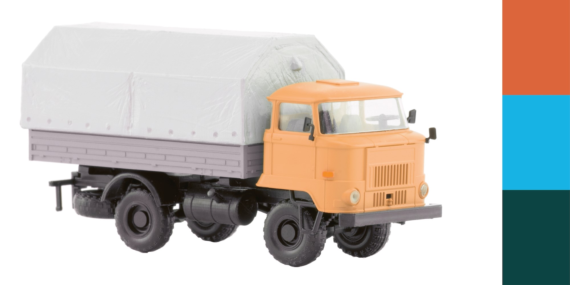 Oprócz jasnoniebieskiego znanego z W50 ze zwykłą skrzynią oferujemy kolory piaskowożółty (sandgelb), czerwony (verkehrsrot) i niebiesko-zielony (blaugrün). do sklepu.