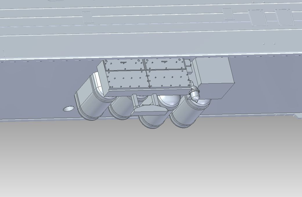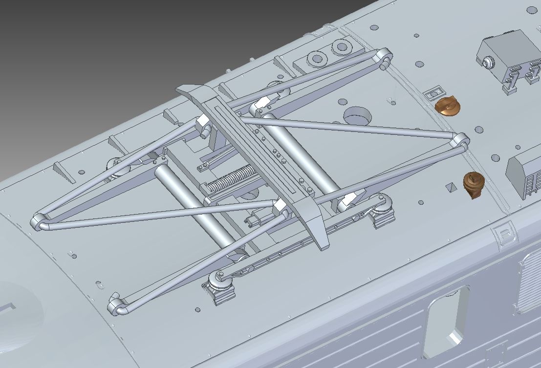 Dach, zabudowa oraz pantograf. Na zdjęciu nie ma wszystkich elementów, które się powtarzają. Zabieg ten jest użyty w celu nie obciążania pliku roboczego. Cała zabudowa dachu z mosiądzu oraz srebra odlewniczego jeśli mosiądz okaże się zbyt ziarnisty.