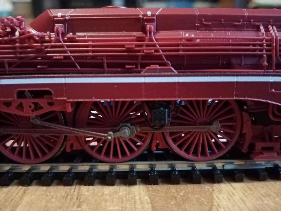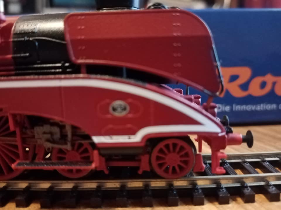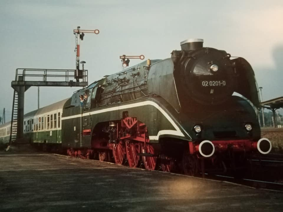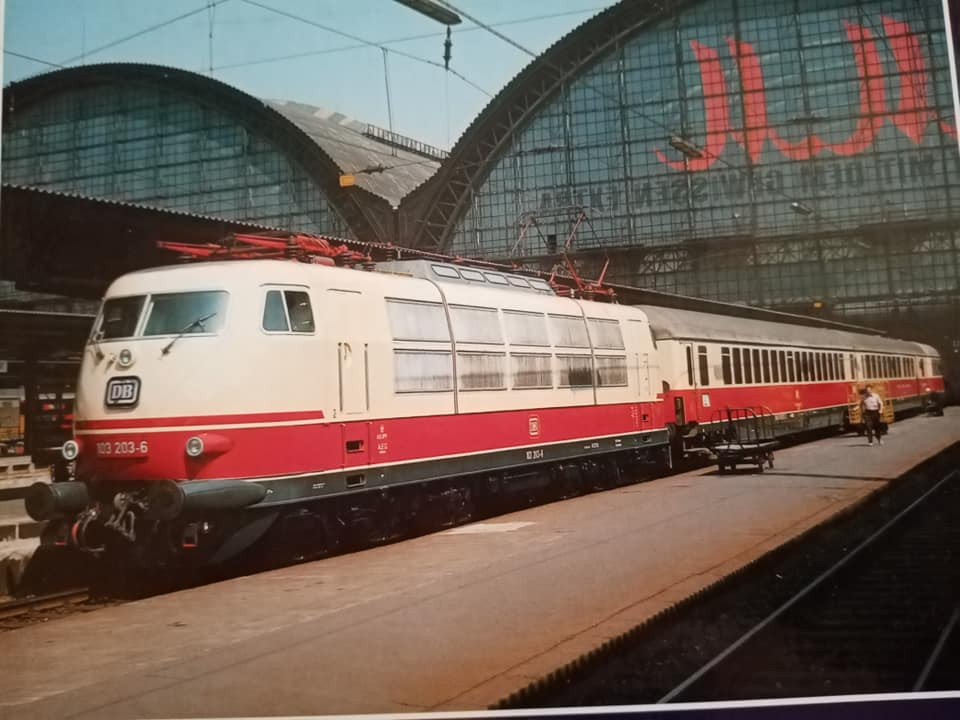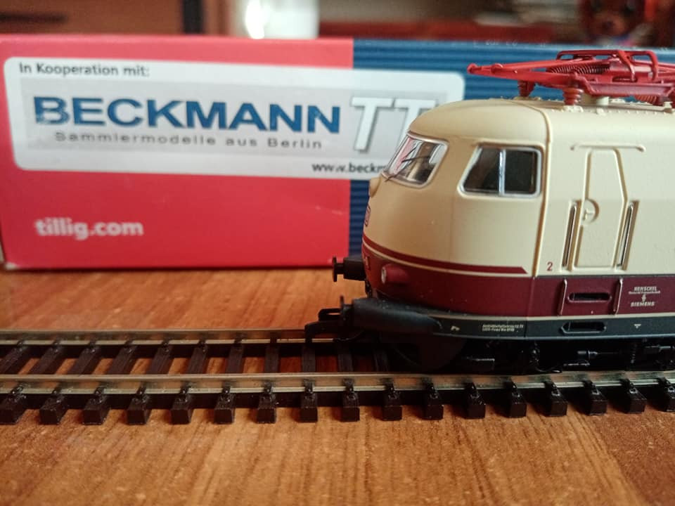 "Nosorożec lub Predator czyli ksywki maszyny 18 201 która była testowana w NRD do prędkości 160km/h z wagonami pasażerskimi wyrabianymi dla bloku wschodniego. W tym malowaniu nietypowym występowała tylko dwa lata razem z emblematem firmy Roco. Swego czasu częsty gość w Polsce."