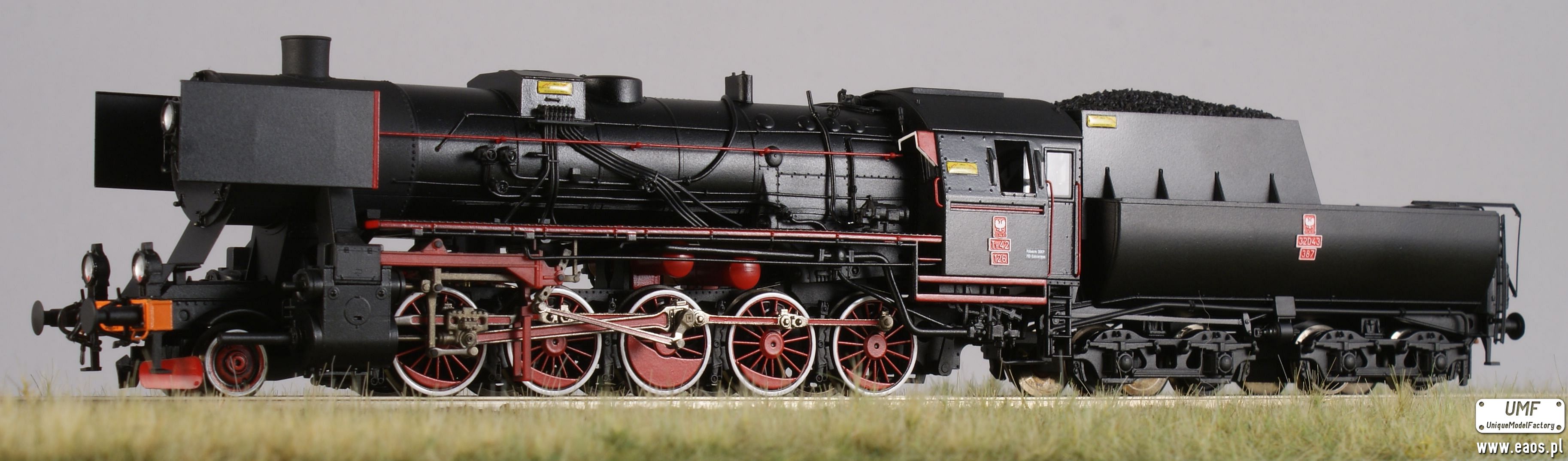 Sam Ty42-126 H0 jest dość nietypowy. Ma zupełnie inne niż reszta orurowanie kotła po lewej stronie. Kanciasta skrzynia węglowa oraz trzeci reflektor na drzwiach dymnicy to jedynie ułamek detali.
