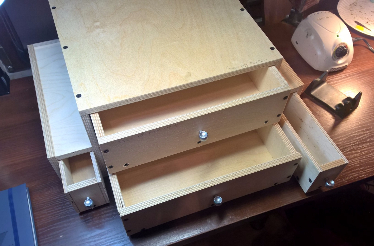 Można je zabrać z narzędziami w środku na każde spotkanie modelarskie. Pod spodem nakleiłem silikonowe przeźroczyste nóżki.