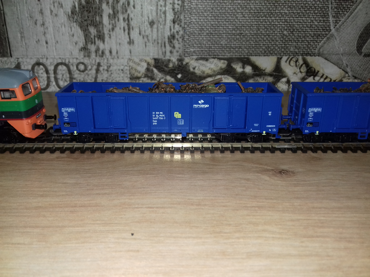 A ten ładunek w węglarkach to imitacja złomu? Gotowiec, bo nie wygląda na samoróbkę?