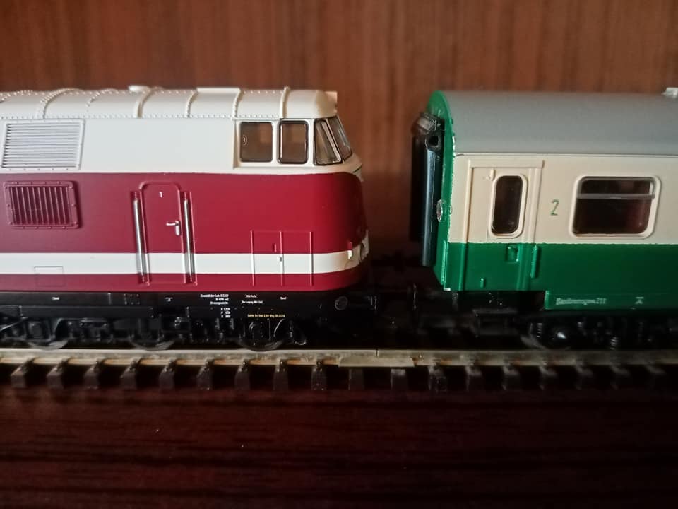 Pierwszy wypust wagonów reko firmy Piko epoka czwarta oraz 119ka tej samej firmy. Który wypust tego modelu tego nie wiem. Tutaj na grupie są koledzy fachowcy od modeli Piko to będą wiedzieć. Mnie interesuje tylko klasyczny model 119ki w wersji fabrycznej DR. Natomiast jeśli chodzi o set wagonów reko to wersja Mitropy oddany model bardzo ładnie i lepiej prezentuje się na żywo jak w katalogu. Mamy klasyczny set. Rok 1980. Pierwsze ubooty w oryginale były usterkowe i dyspozytor w szopie wolał mieć pod parą zdatne parowozy do ruchu na wszelki wypadek."