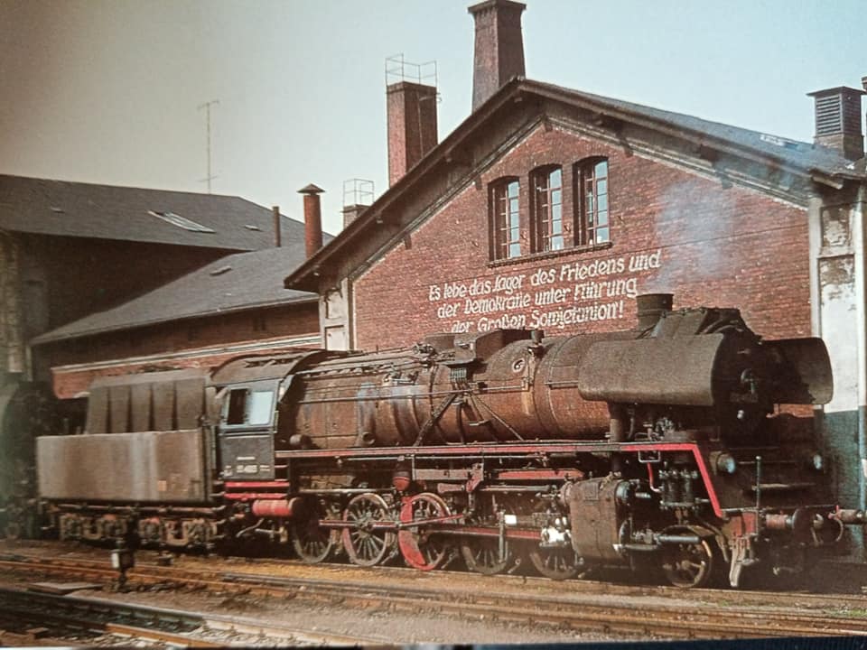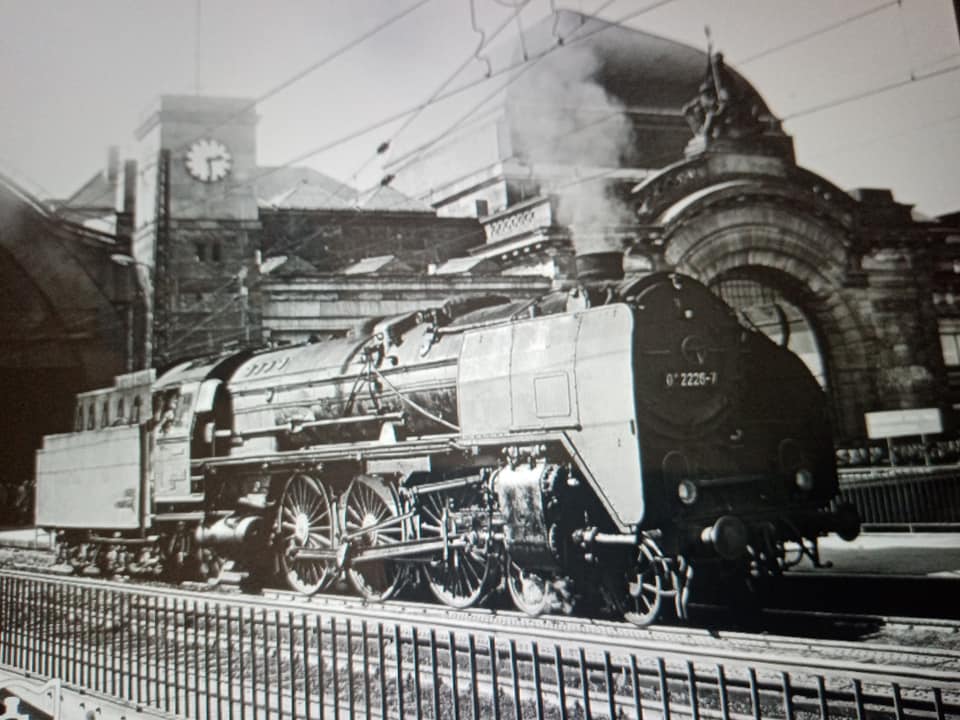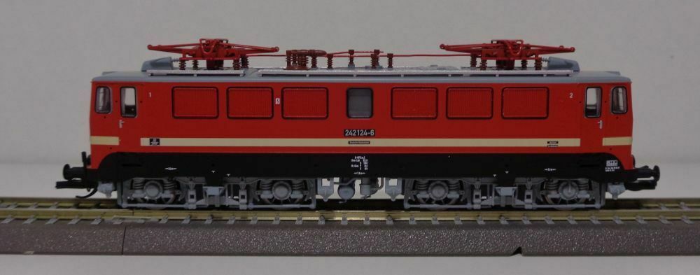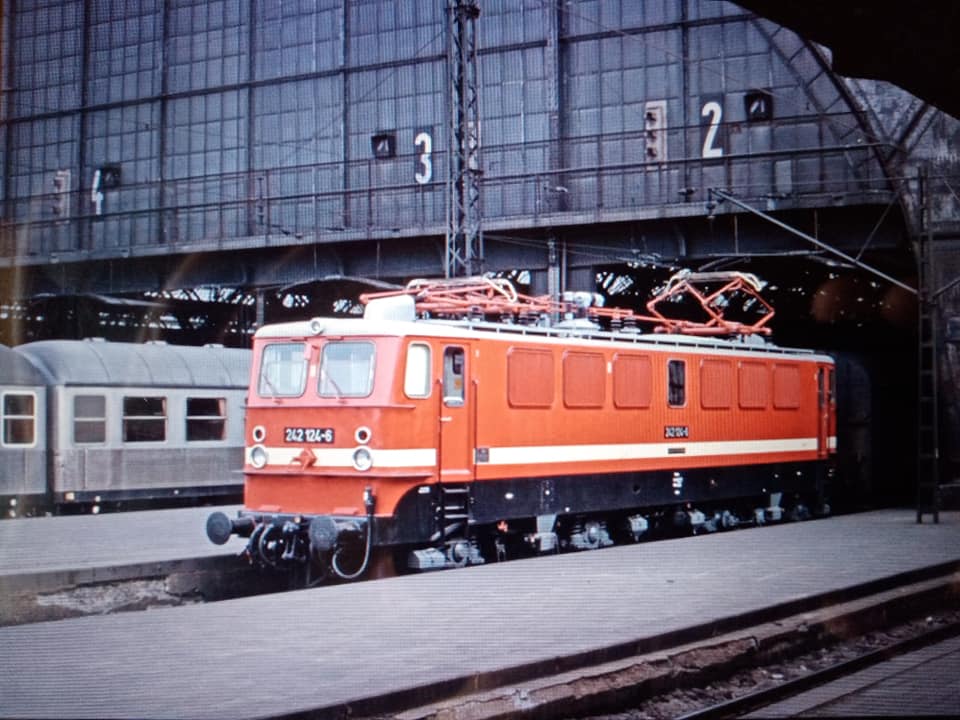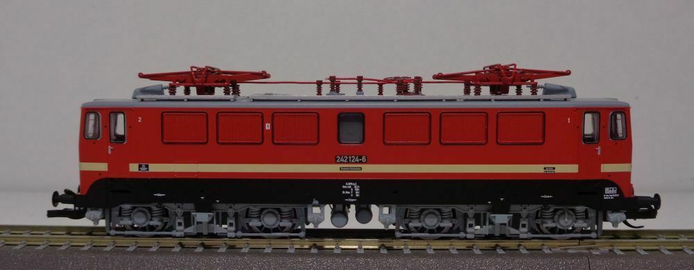 "Stara znajoma. Dawniej znana wszystkim seria 242 018 starego Gutzolda pod szyldem BTTB. Tutaj w oryginale w węźle kolejowym Halle z pociągiem podmiejskim. Pierwszy na haku wagon typu E5. Rok 1971 epoka wczesna czwarta. Przydział i stacjonowanie lokomotywownia Halle oraz niezliczona ilość makiet TTortów w dawnym bloku wschodnim. Kolekcjonerzy staroci w dobrym stanie łączcie się."