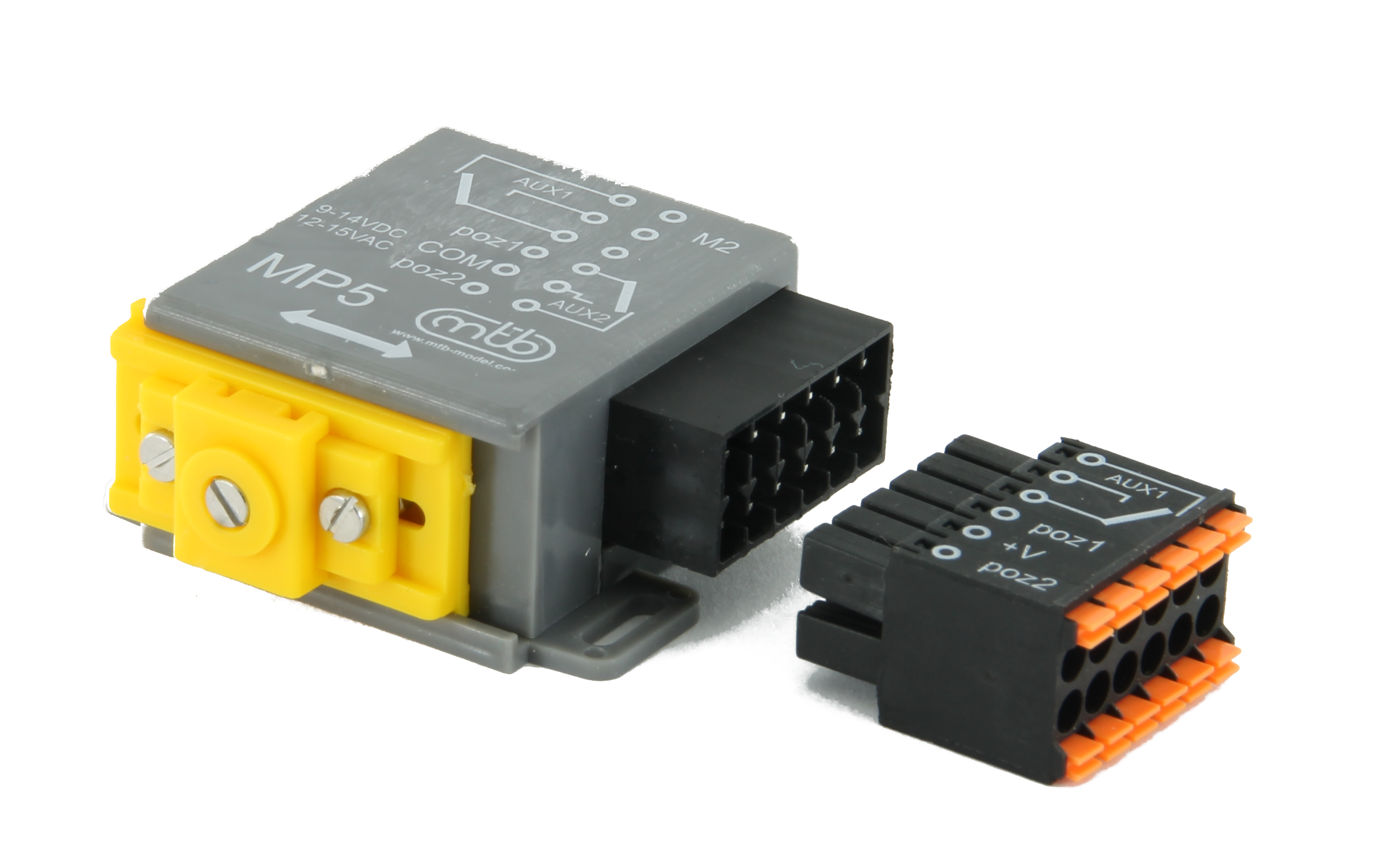 Są sytuacje gdy pojedyncze styki wykonawcze to za mało, np jeden zestaw do iglic/krzyżownicy, a drugi komplet jest potrzebny do sterowania dalszymi układami (kolejny rozjazd, sygnały lub przekaźnik) - wtedy możemy użyć napędu MP5.