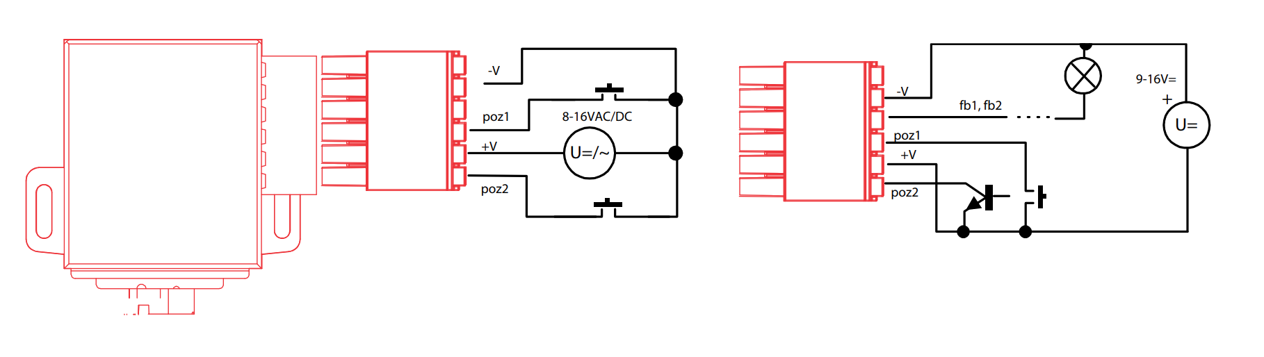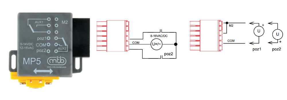 - 2 sposoby sterowania, pierwszy analogicznie jak MP1, drugi dwoma przewodami poprzez podanie napięcia o przeciwnych polaryzacjach,