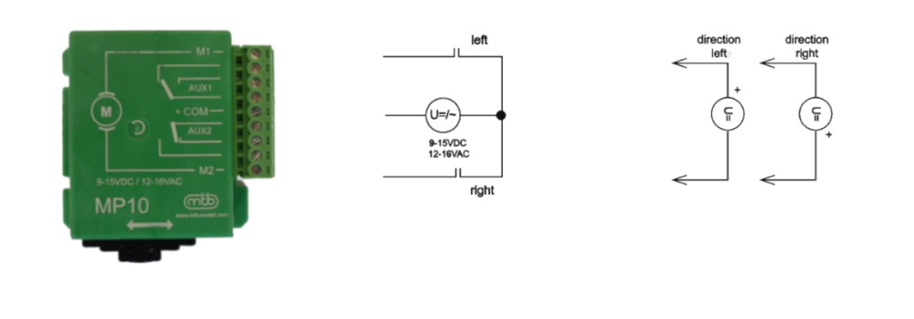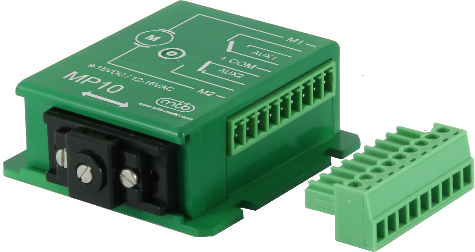 Podłączenie napędu MP10 jest uniwersalne – trójprzewodowe (jak elektromagnesy) lub dwuprzewodowe (zasilanie napięciem o przeciwnych polaryzacjach), dzięki czemu oryginalne typy można łatwo wymienić bez zmiany instalacji elektrycznej toru.