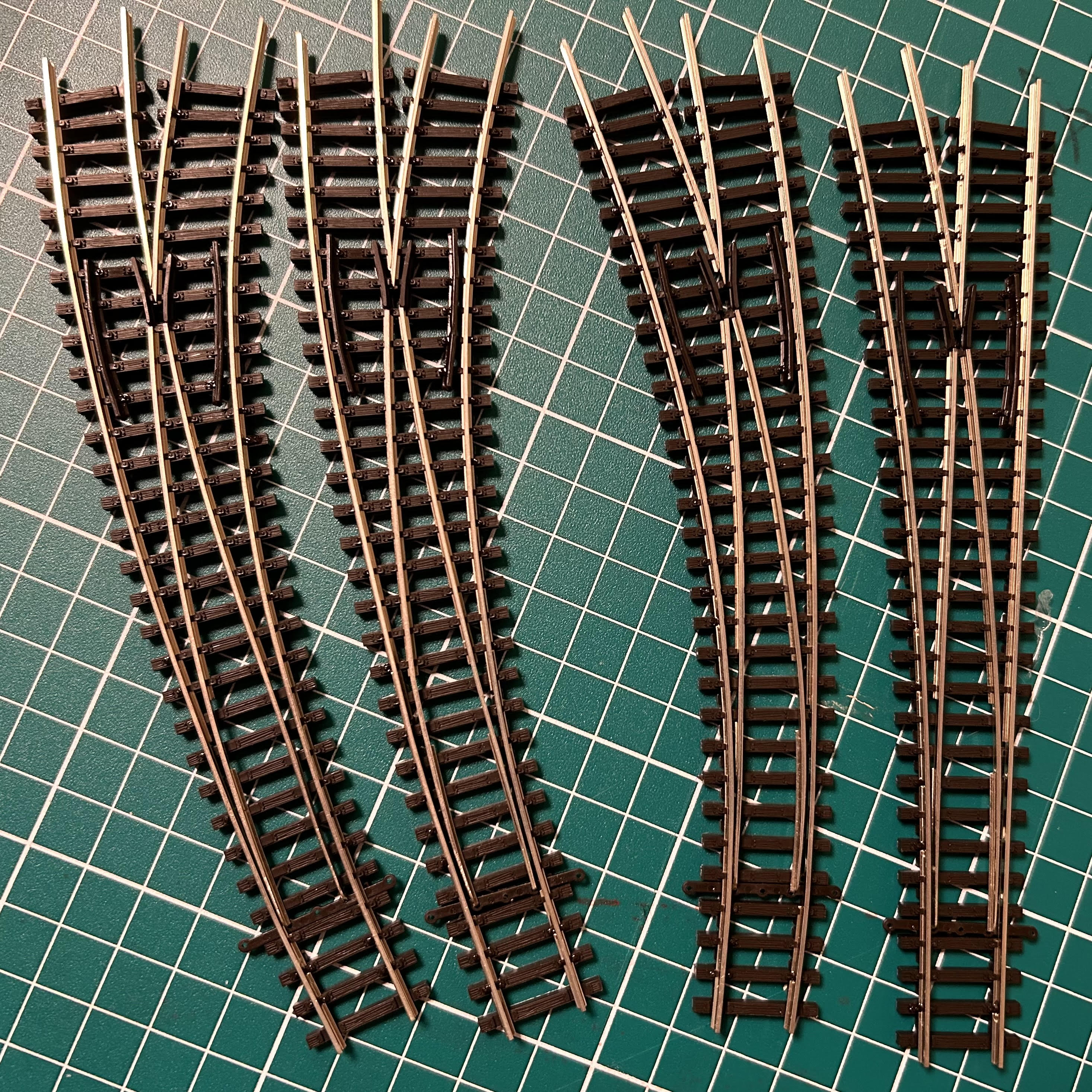 Pokleiłem też CA szyny do podkładów punktowo. Obetnę końcówki szyn.