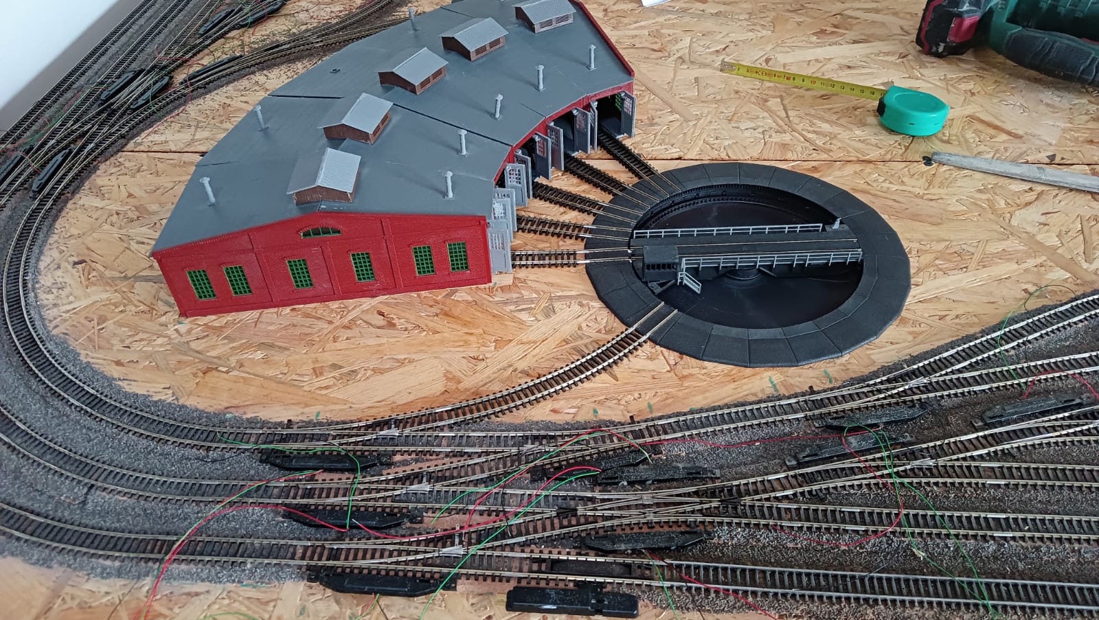Osadziłem już obrotnice i lokomotywownię. Co prawda w rzeczywistości jej tam nie ma, no muszę iść na jakieś kompromisy. Bo zależy mi też na dobrej zabawie jaka tu będzie.