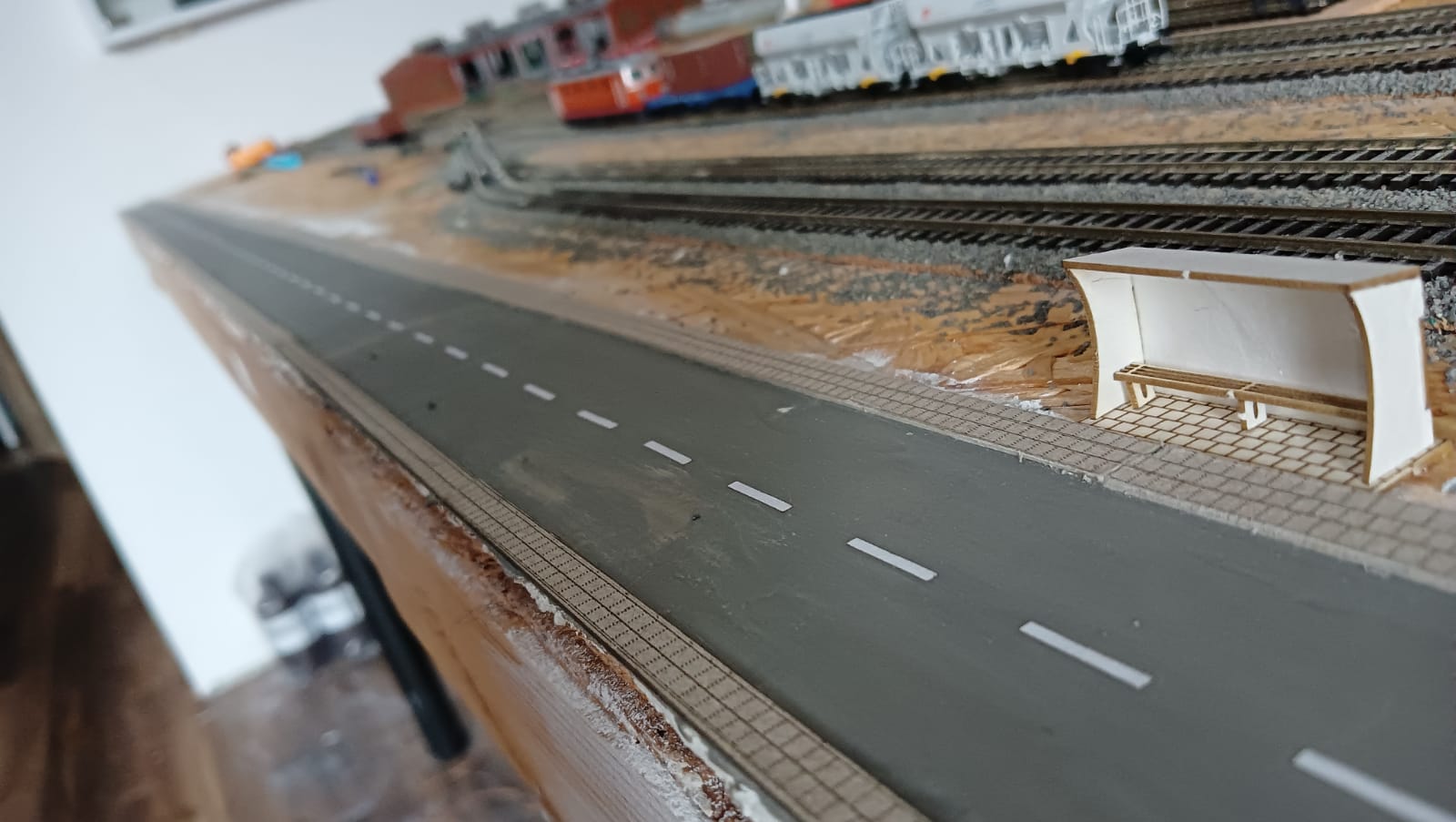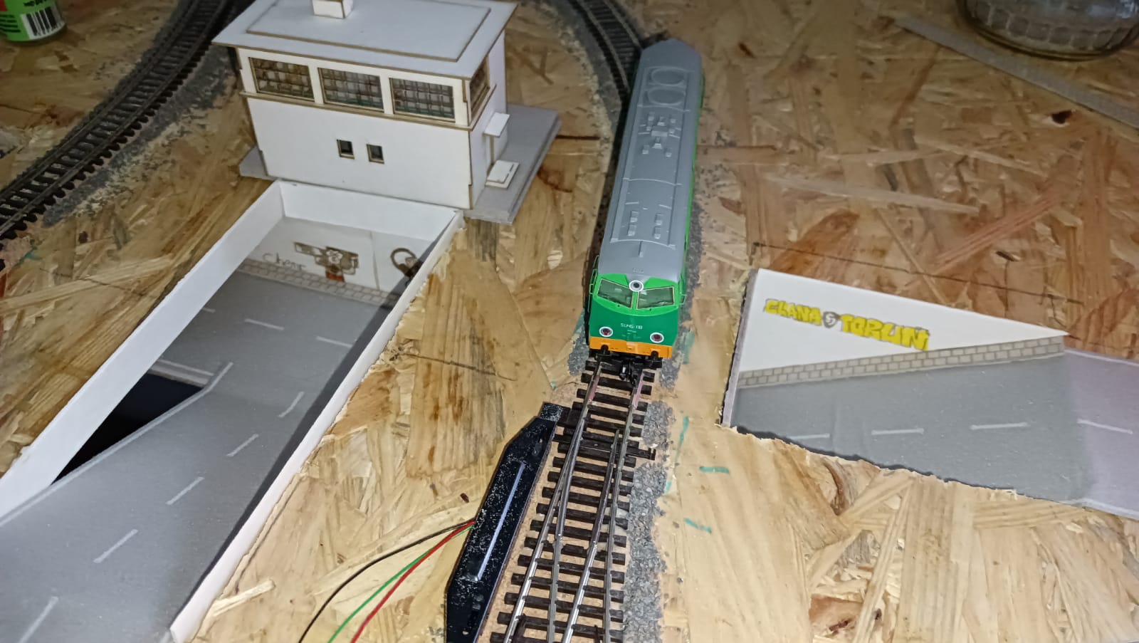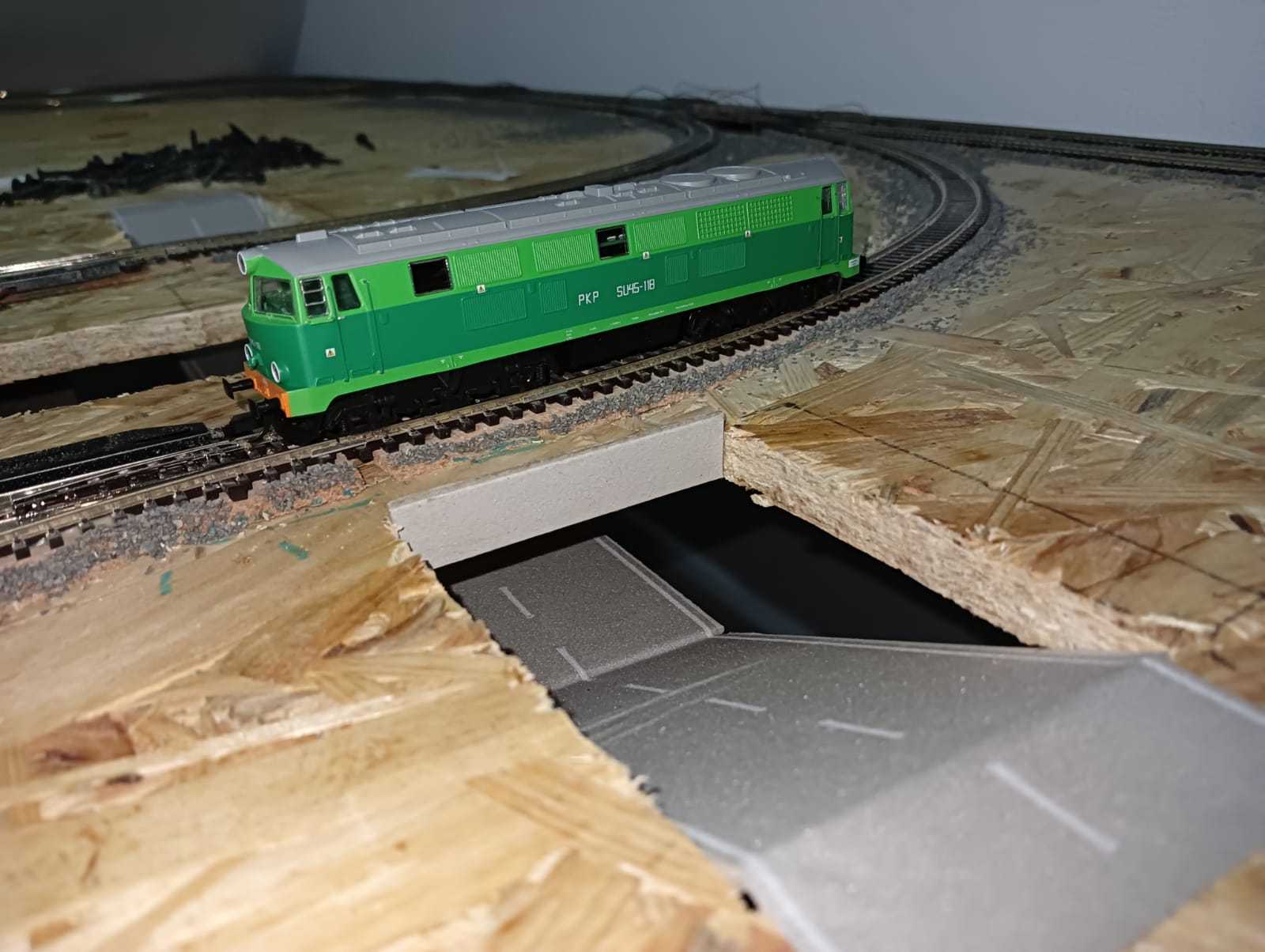 Ten wjazd do tunelu (od krawędzi makiety w kierunku nastawni) jest fatalny (zbyt stromy). Przecież jest tam miejsce żeby chociaż odrobinę go wygładzić. Również zakręt wg mnie powinien być łagodniejszy, a nie takie złamanie pod kątem prostym. W rzeczywistości żaden samochód by pod taki podjazd nie podjechał (latem, o zimie nie wspomnę). Zrobisz jak uważasz, ale wg mnie wygląda to źle. No chyba, że pod ulicą są ukryte tory części technicznej i rzeczywiście się nie da nic z tym zrobić.