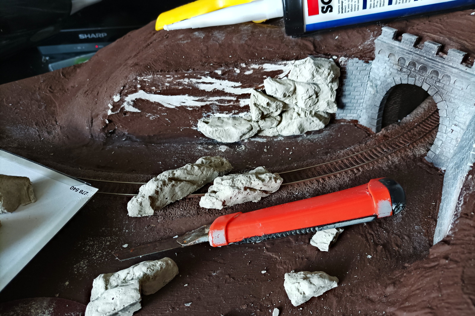 Ostatnia przymiarka tunelu na sucho i po skończeniu próbnych jazd przykleiłem tunel na stałe.
