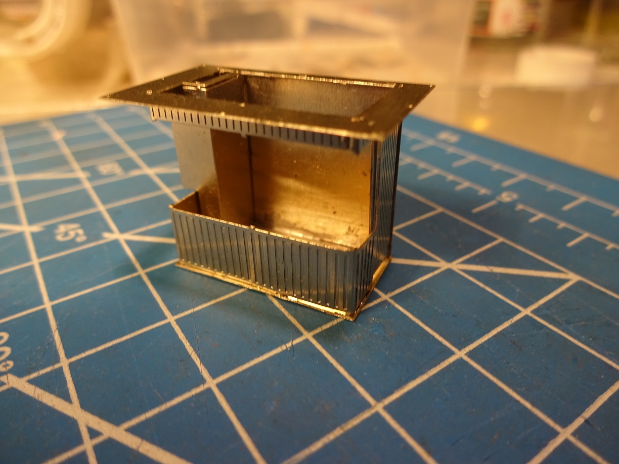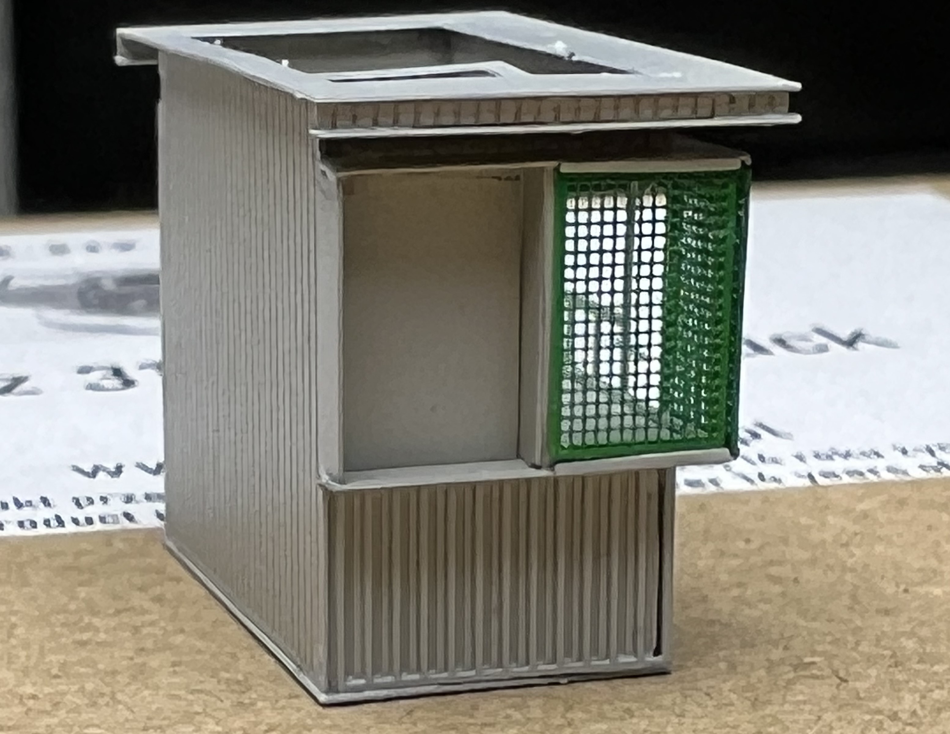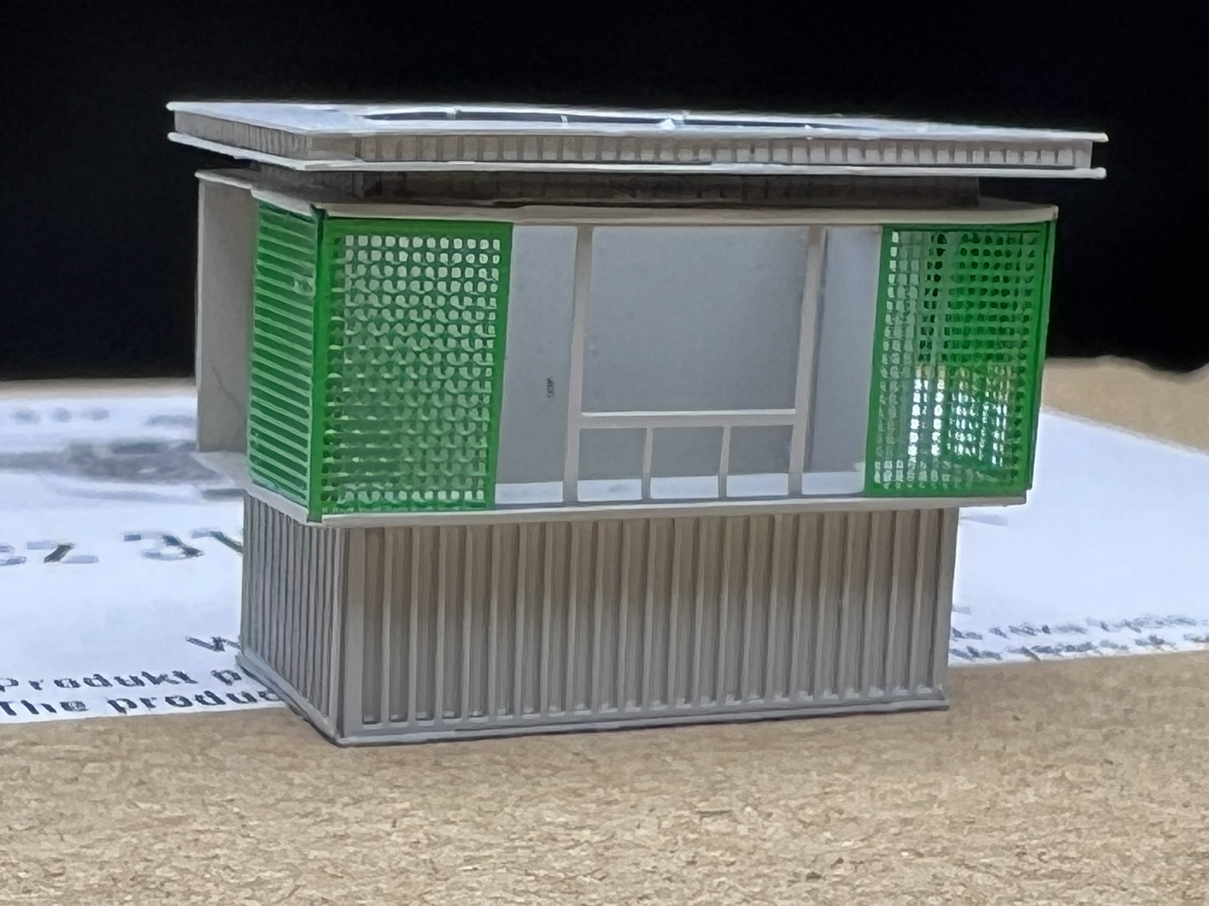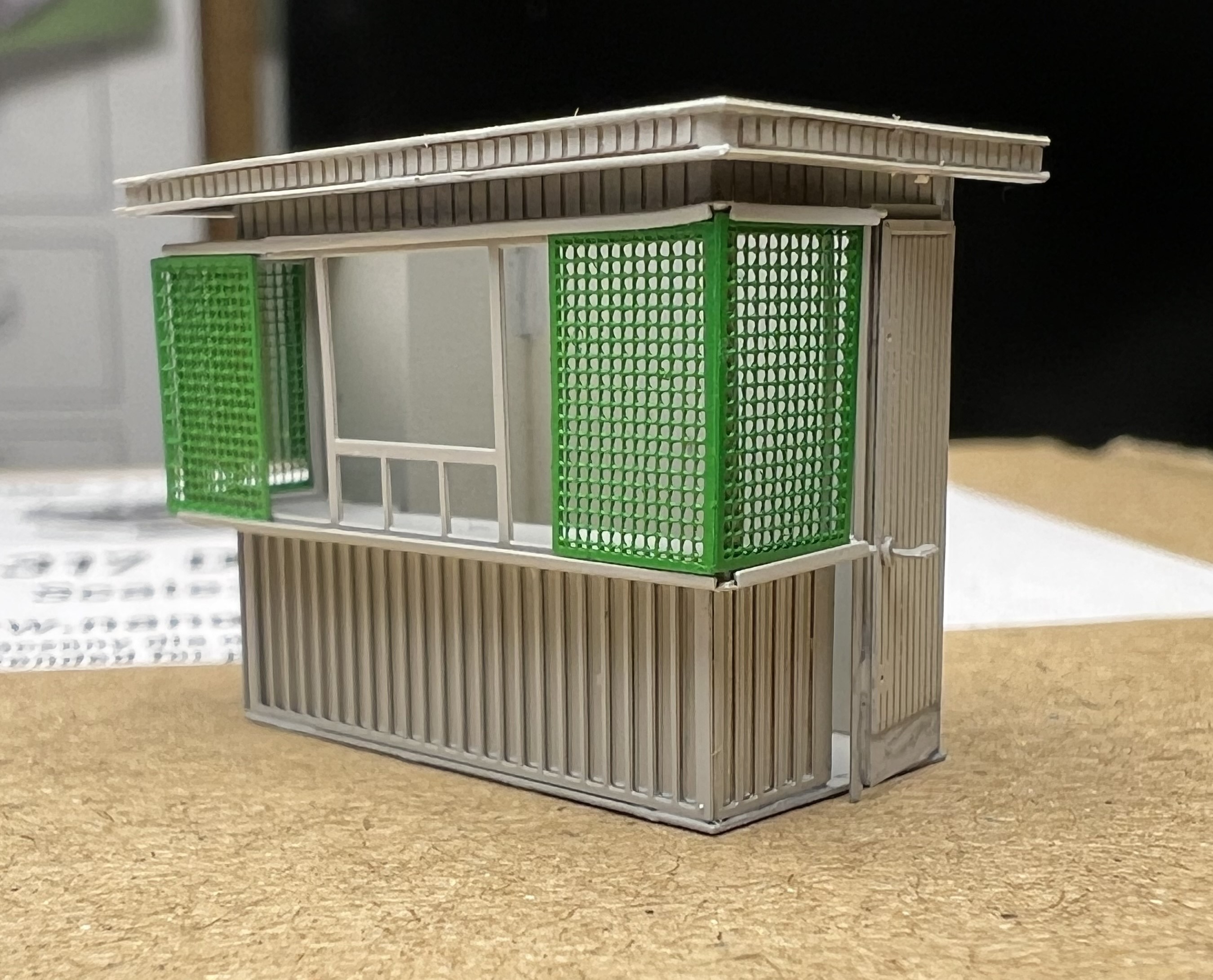 Nie wiem, jak w metalowym. Kleiłem kiosk z kartonu, ale to wygląda jak półka na gazety. Mocowana wewnątrz, wzdłuż przedniej i bocznej ściany. Przez szybę klient widział gazety.