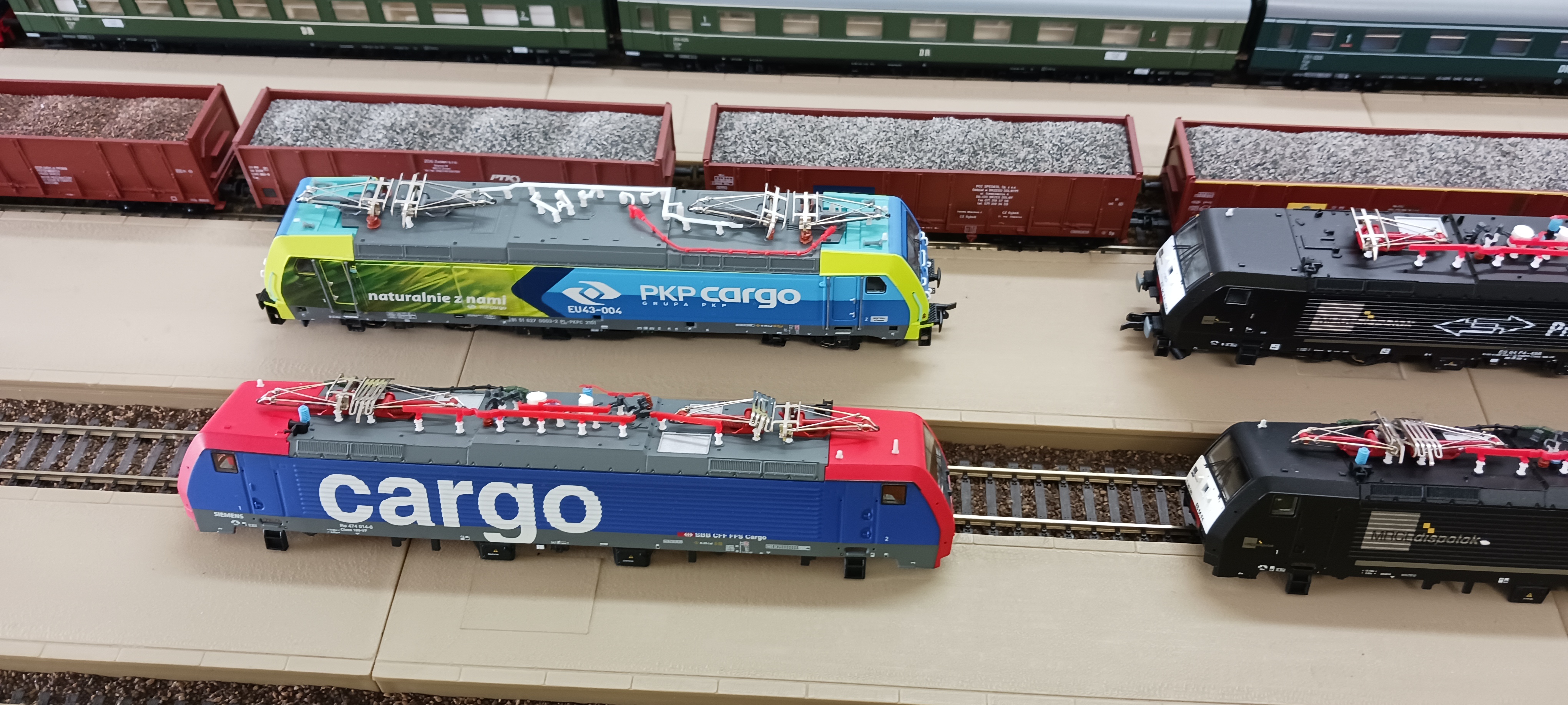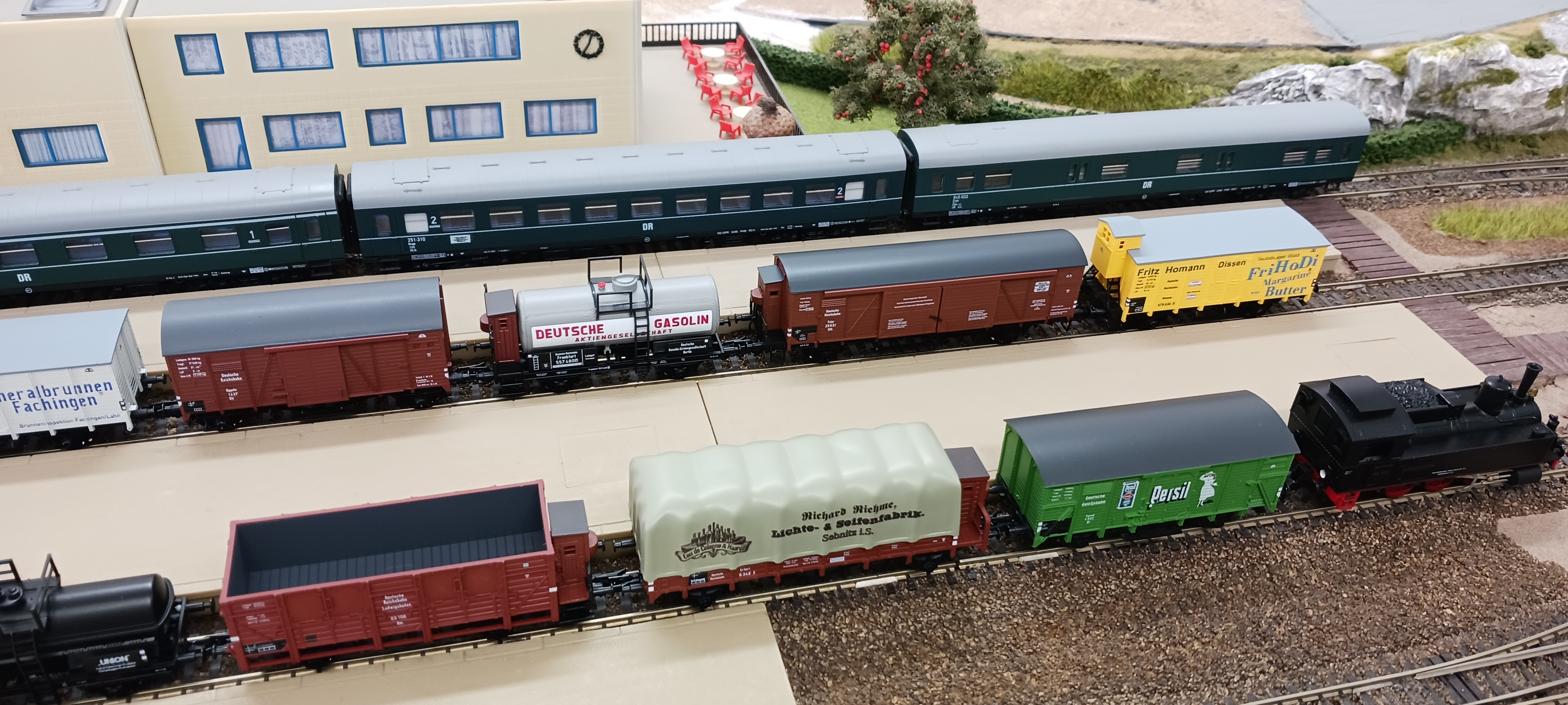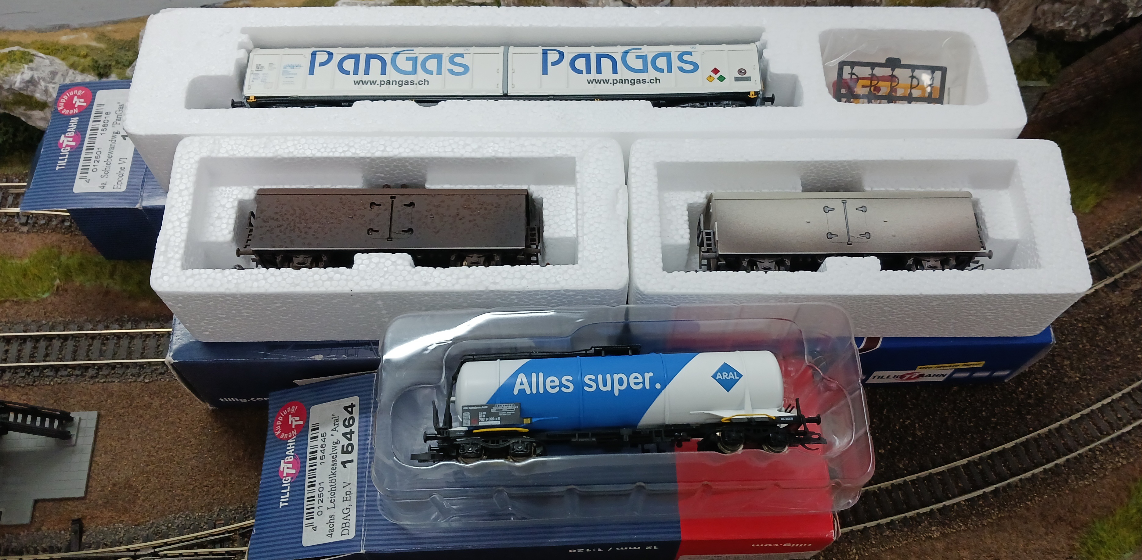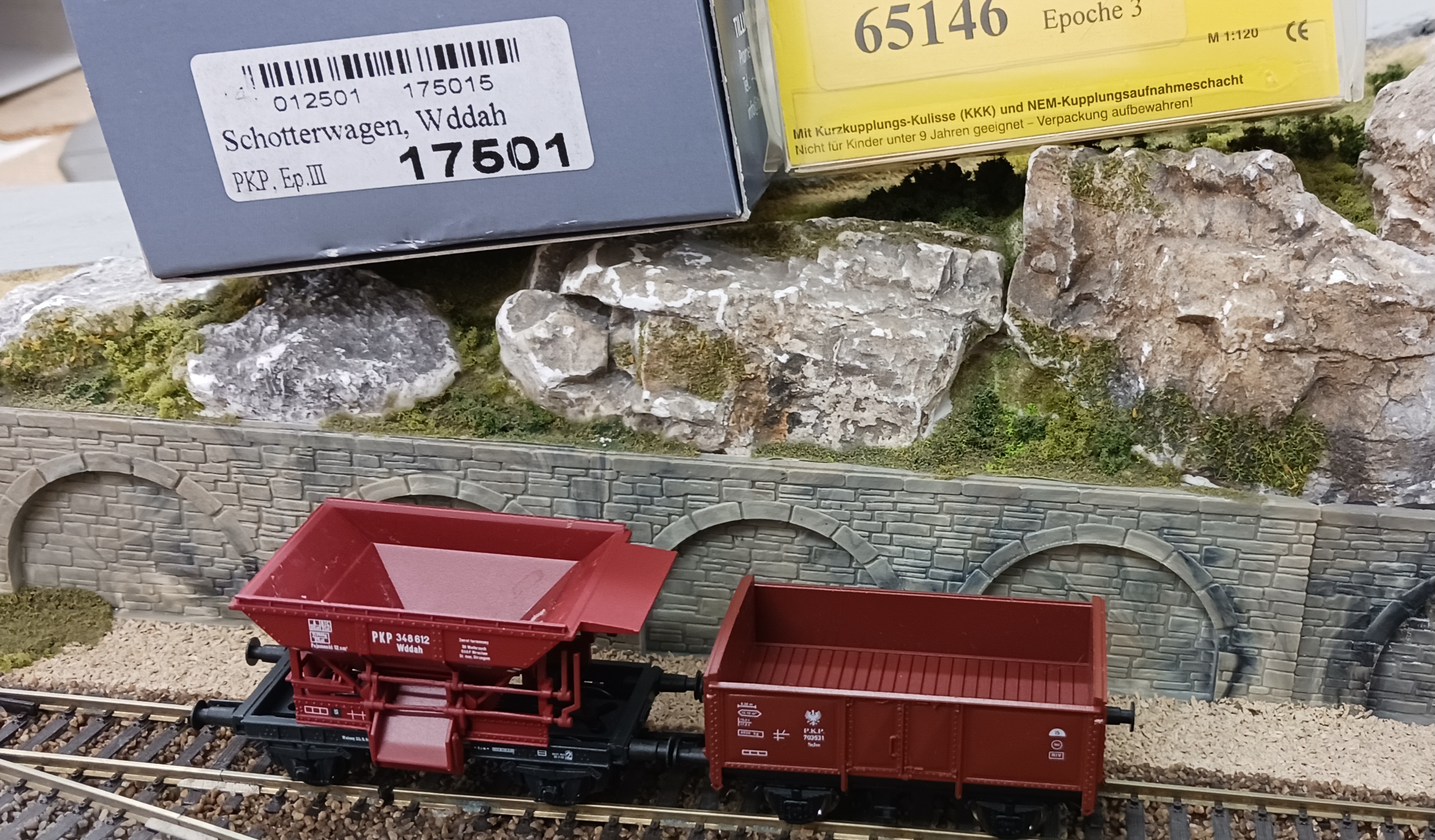 Był wagon węglarka SBB,wagon chłodnia zardzewiała,wagon z ścianami przesuwnymi PANGAS,wagon cysterna ARALi kilka opakowań torowisk.