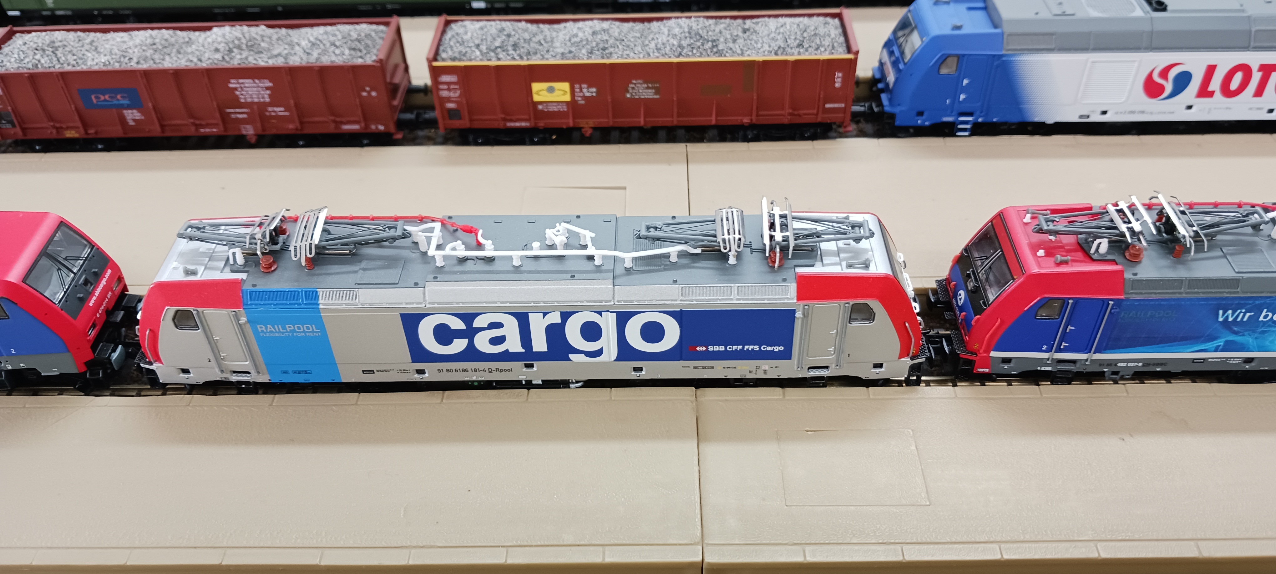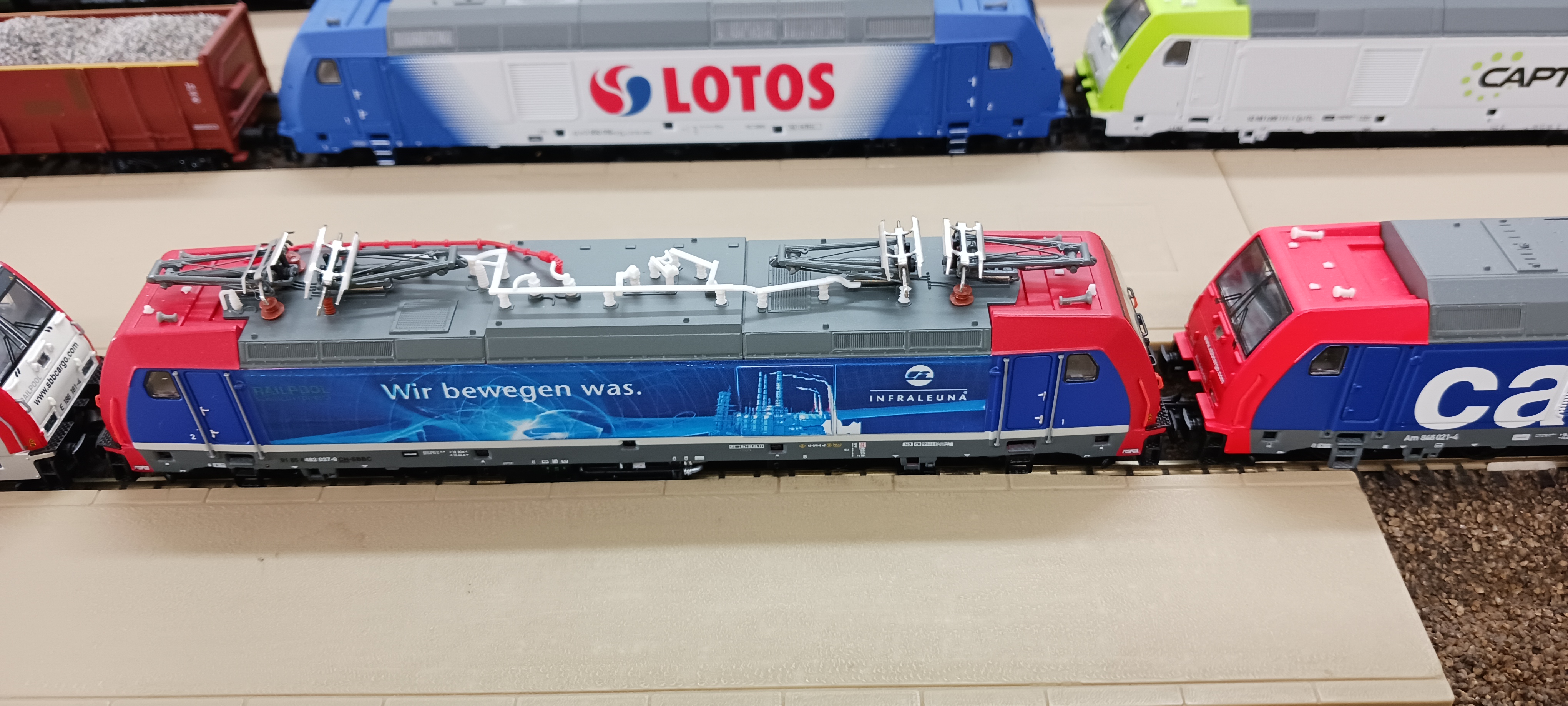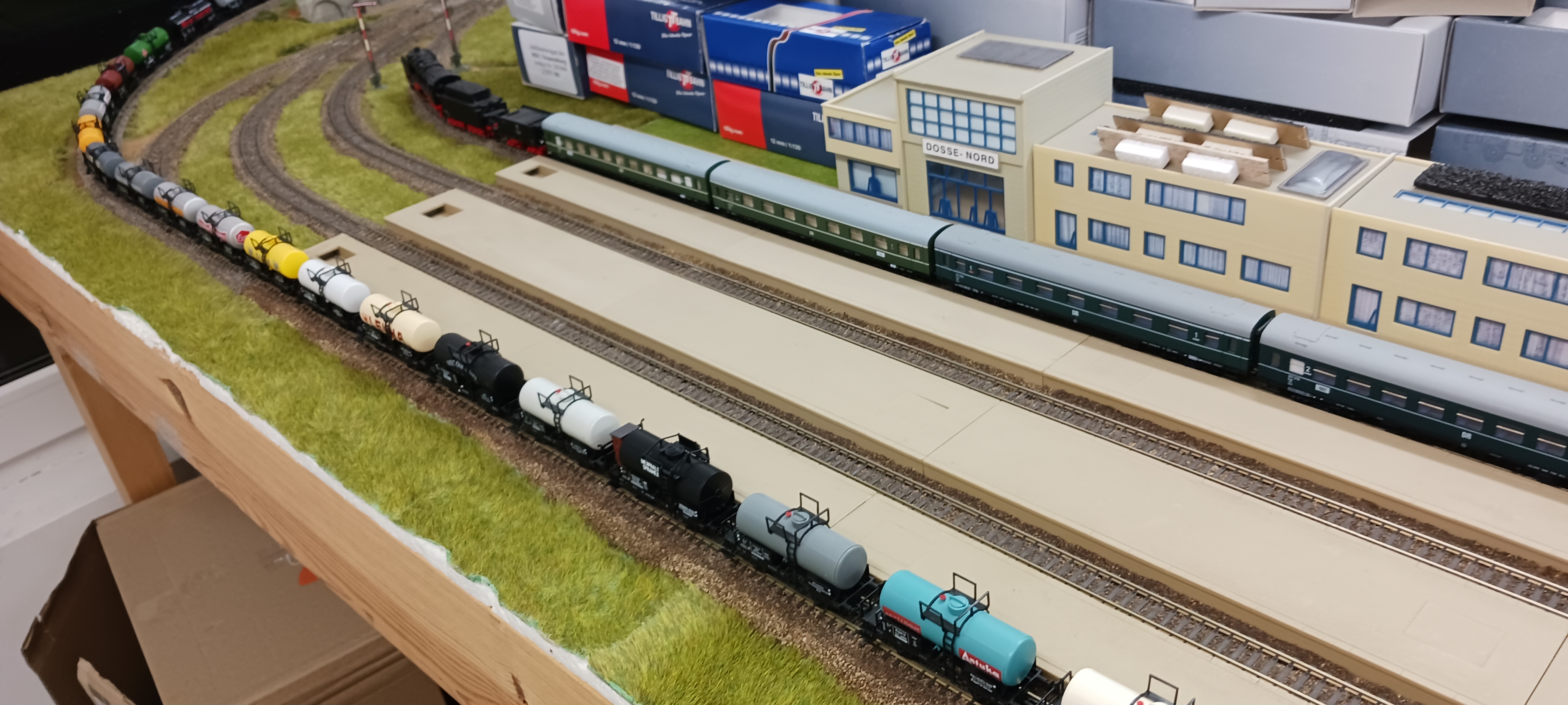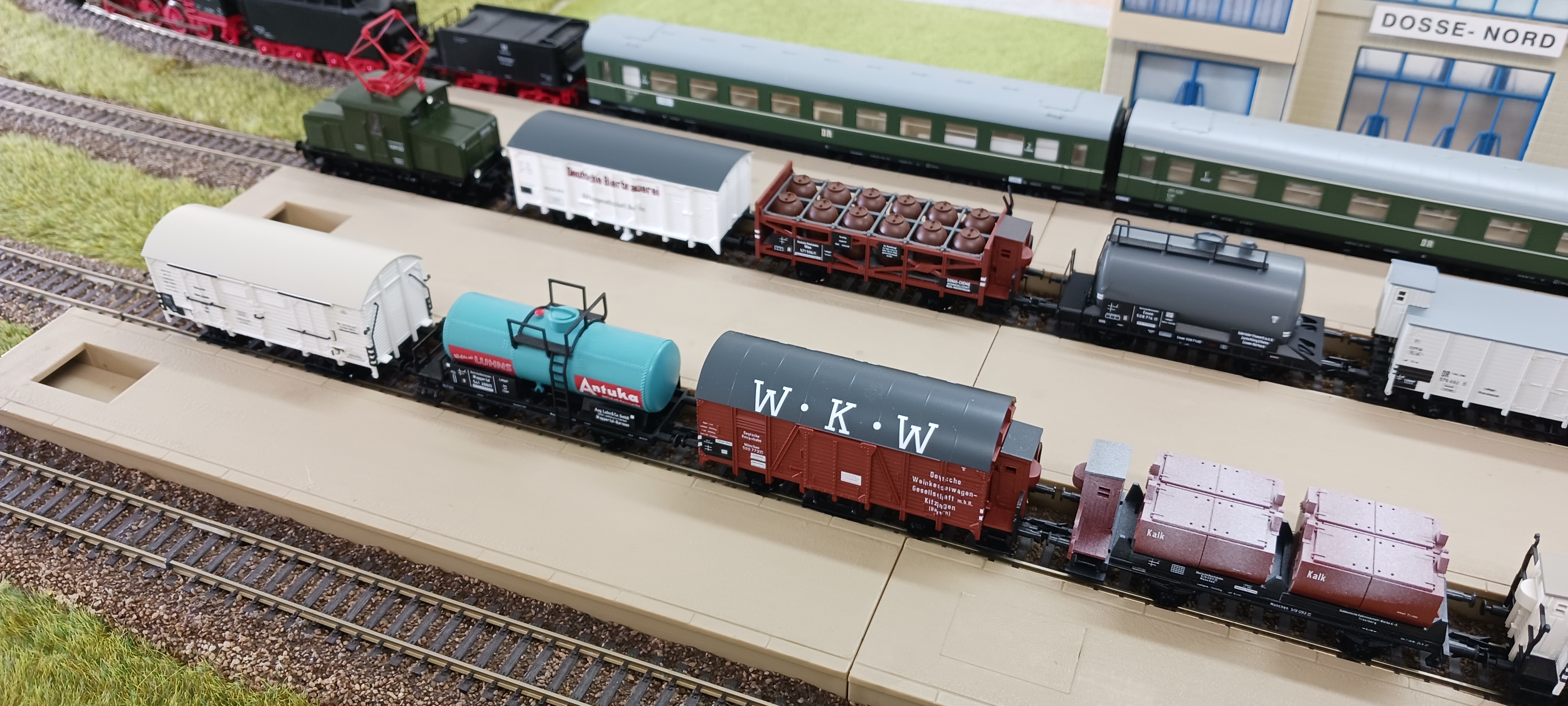 Był wagon węglarka SBB,wagon chłodnia zardzewiała,wagon z ścianami przesuwnymi PANGAS,wagon cysterna ARALi kilka opakowań torowisk.