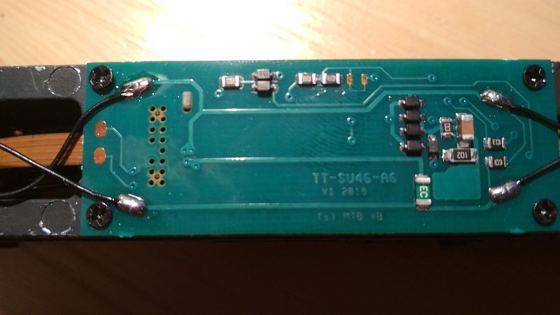 We wnętrzu modelu wita nas wygięta płytka PCB - tak jakby ktoś na siłę dokręcał ją do korpusu. ST43 miał jakąś dodatkową piankę między korpusem, a płytką dzięki czemu nie była tak beznadziejnie wygięta . Ciekawe jak ten typ montażu wpłynie na eksploatację lokomotywy.