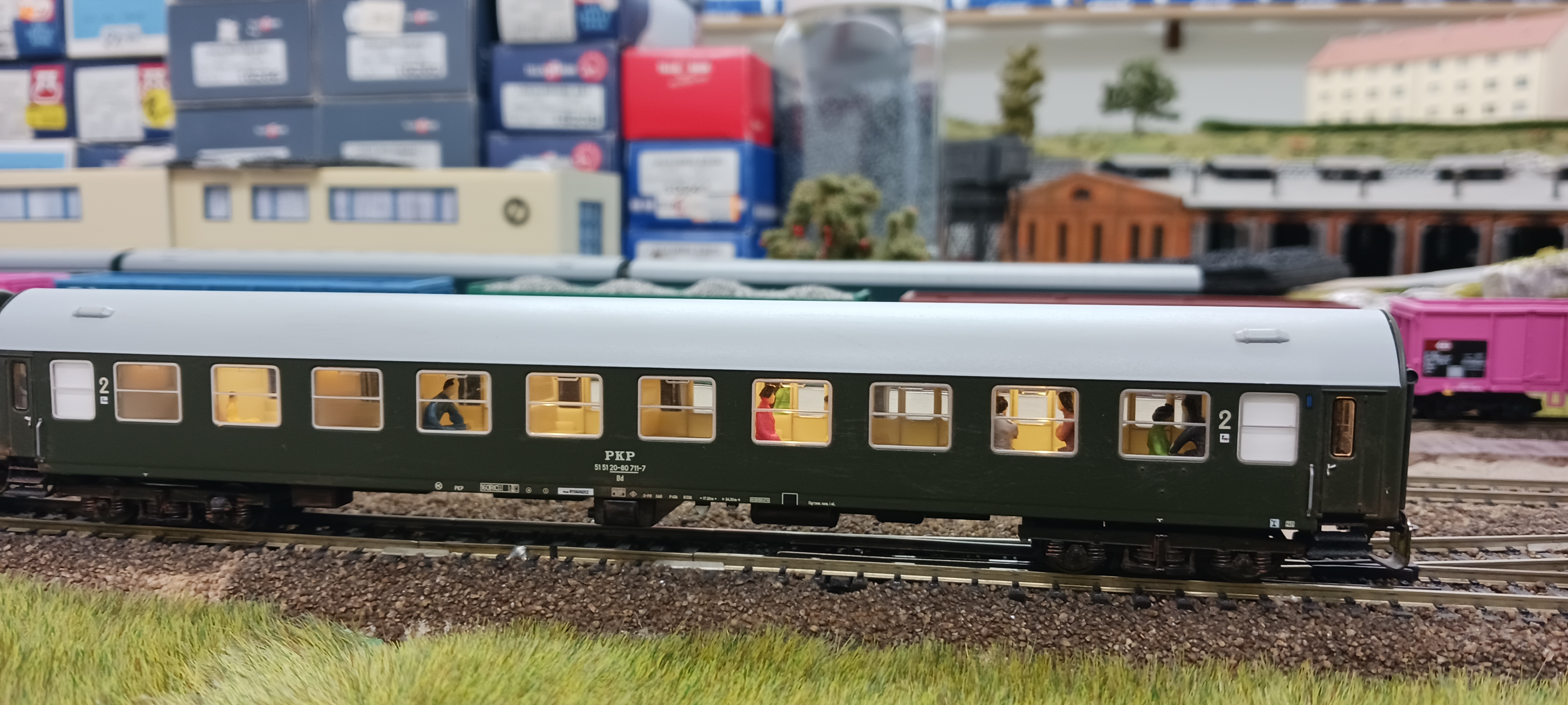 Po woli sztuka po sztuce odbieram wagony od kuzyna.Bawi się w oświetlenie,pasażerów i w patynę.