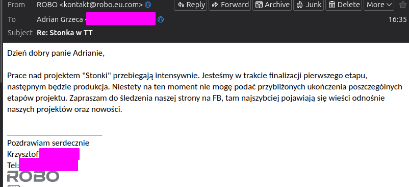 Dla czekających na Stonkę od Robo w TT. Niby będzie, ale tak zero informacji..