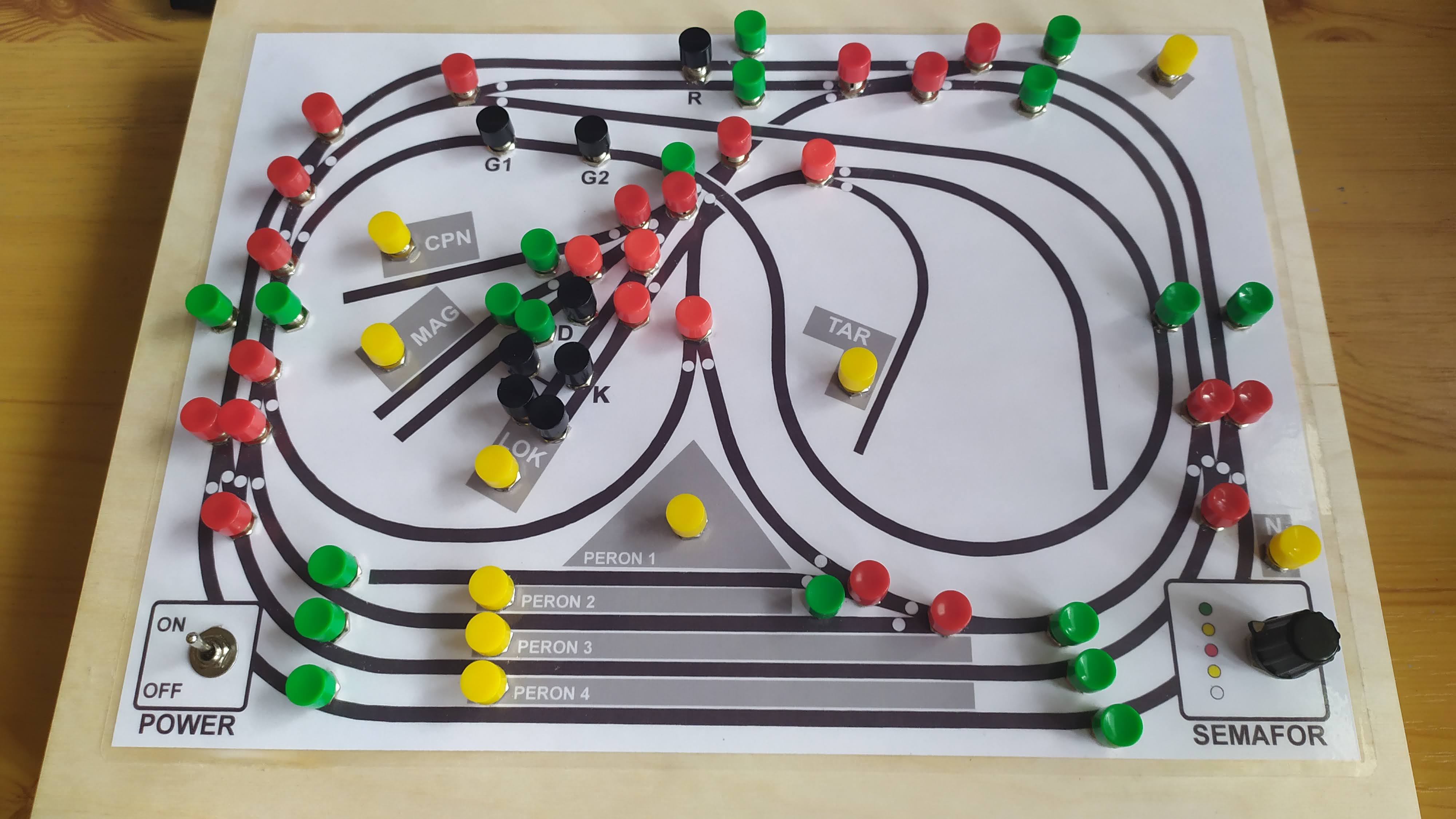 Mam wrażenie, że do tego czasu nietykany rozjazd nie ma wyświetlonego stanu ? Zdało by się po załączeniu zasilania wykonanie resetowania wszystkich rozjazdów do stanu "bezpiecznego" (wyzerowanie) co by i ożywiło lampki lub zapalenie lampek zgodnie z zapamiętanym stanem rozjazdów.