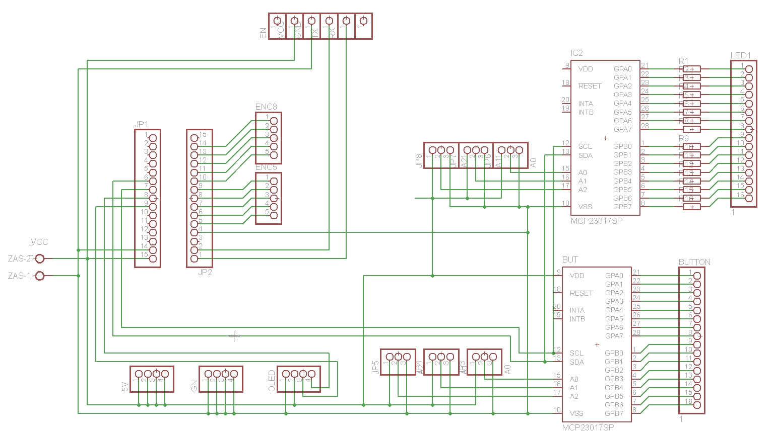 Płytka to podstawka pod Arduino Nano + dwa układy do komunikacji z guzikami i diodami LED. A za pracę odpowiada program.