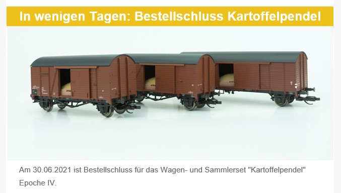"Termin składania zamówień na wagon i zestaw kolekcjonerski "Wahadło ziemniaczane" epoka IV upływa 30 czerwca 2021 r.