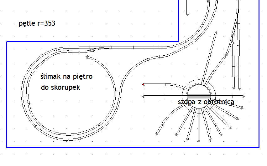 4. Przy rysowaniu okręgów rysuje odrazu zewnętrzne ułożenie toru. Potem problem z ułożeniem. A tak przykładasz do linii podkłady i gotowe.