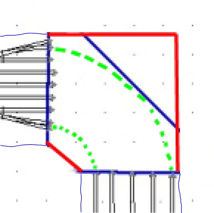 Problem z ciasnymi łukami można rozwiązać tak, że najbardziej wewnętrzny będzie miał np 310/353 mm, natomiast wystający róg trójkąta (ten z prostym kątem) można ściąć i będzie zamiast trójkąta - wielokąt: