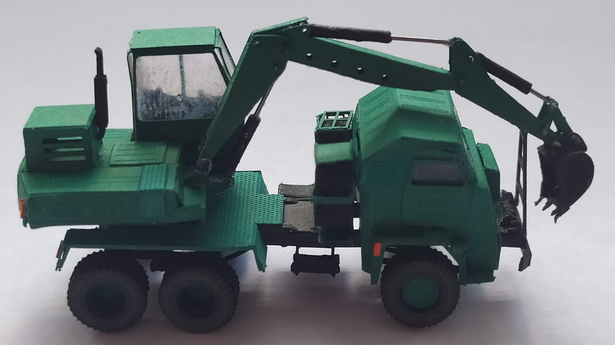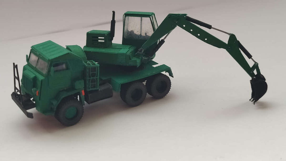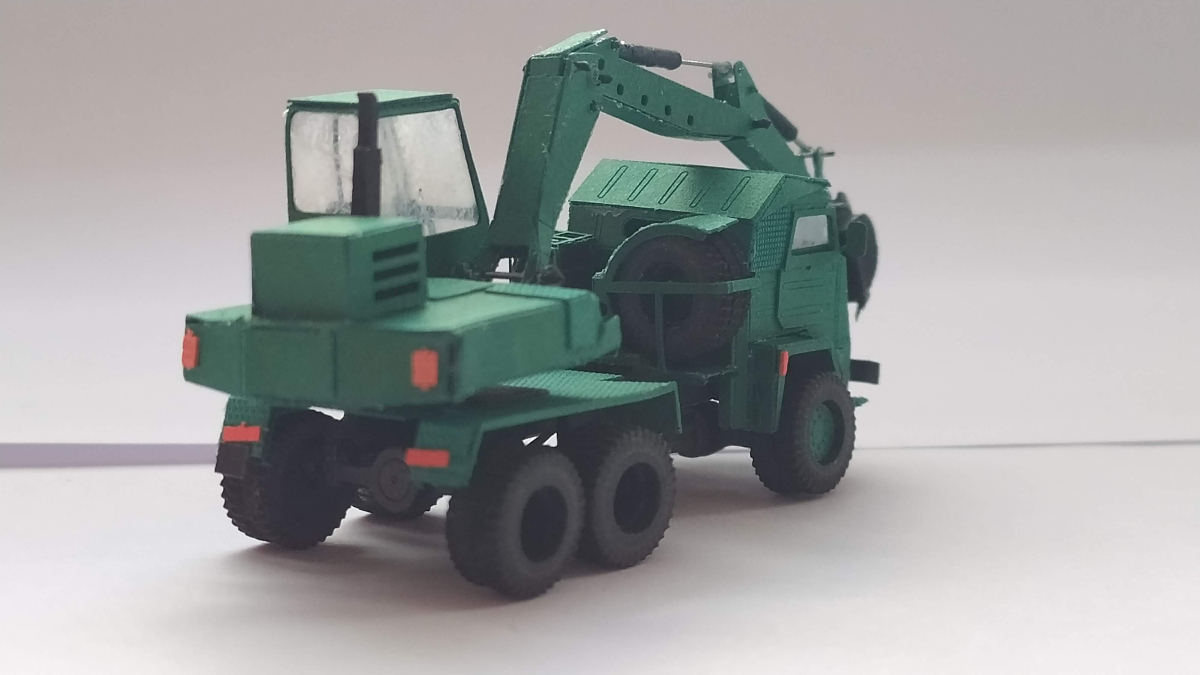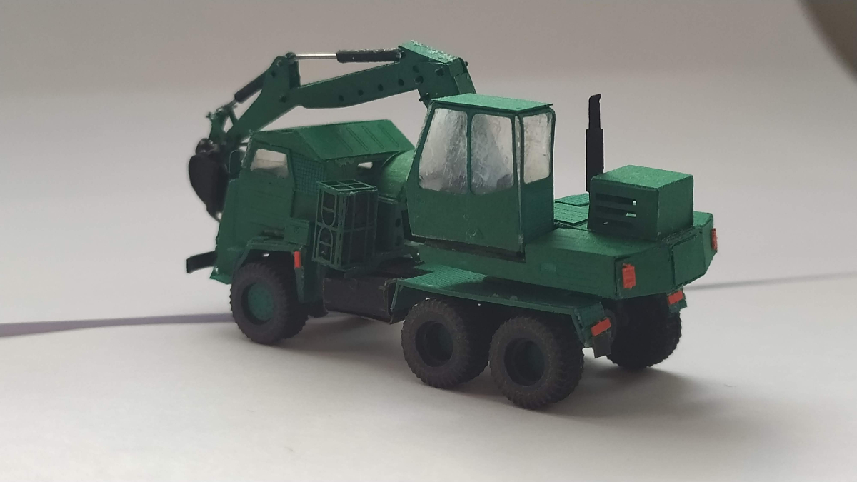 Koparka gotowa. Nie uchroniłem się przed błędami i niedociągnięciami, ale to mój pierwszy papierowy model w tak niewielkich rozmiarach.
