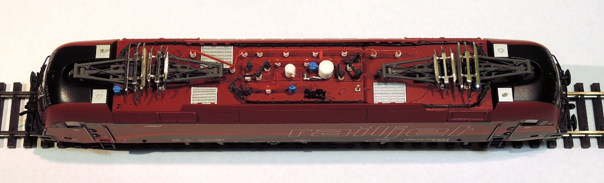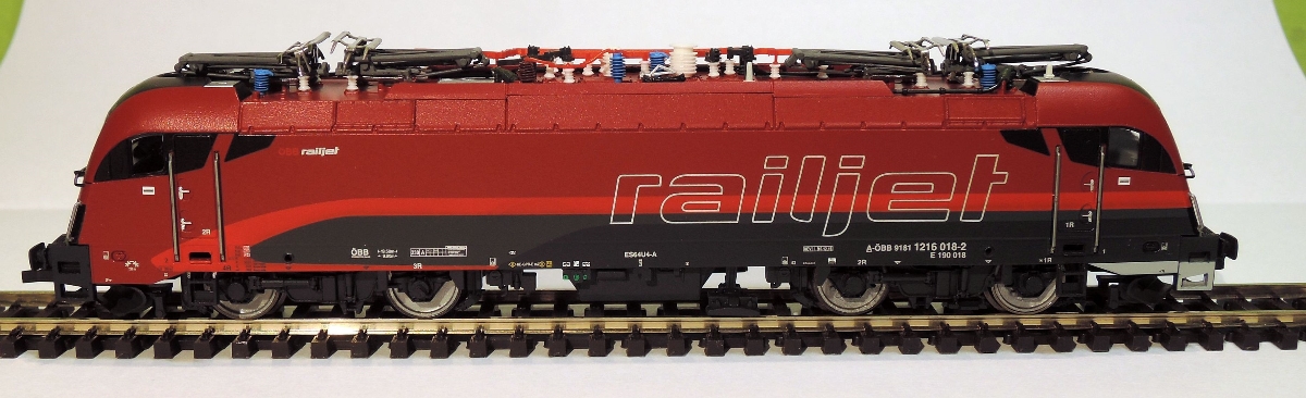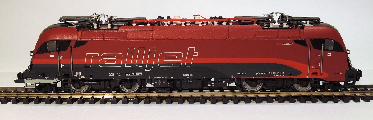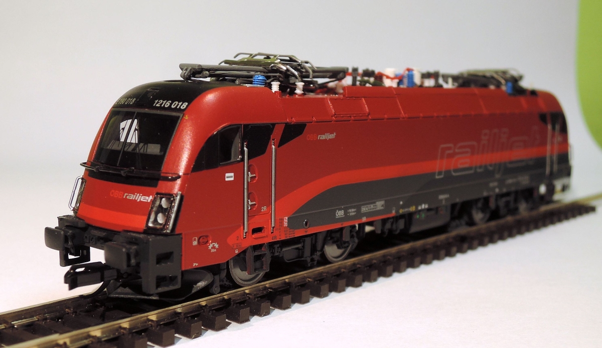 ) wersja ÖBB "Railjet". Piękna sztuka, dużo detali, dobrze wykonana (np. czytelne napisy). Istnieje gniazdo dekodera PluX12 i miejsce na prostokątny głośnik.