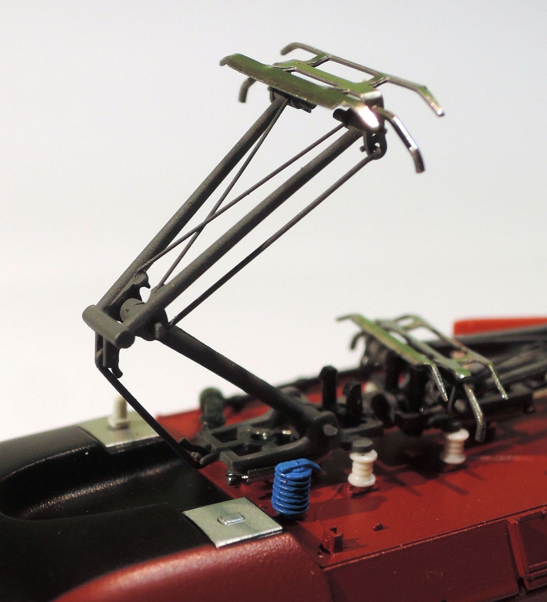 Może będą pasowały pantografy połówkowe z innych lokomotyw Tilliga,trzeba by było dokładnie przejrzeć ulotki erzatzteile elektryków z pantografami połówkowymi.W tym przypadku jest cała buda z pantografami,ale w innych lokach już występują takie pantografy jako część zamienna,które są podobne.