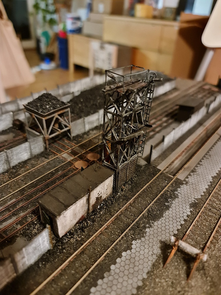 Tak jak pisałem jedyne co muszę przerobić to tory wagoników. Nie pomyślałem przy układaniu jaki powinien być odstęp między ich osiami. Wyszło 15mm, a do wyciągu potrzeba 10mm.