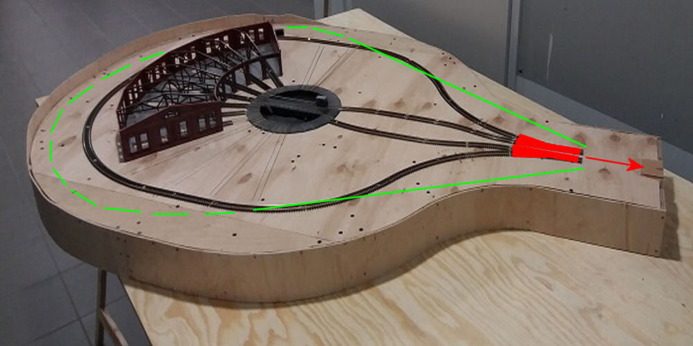 Możesz się nawet pokusić na 2 tory za szopą (jeden w obecnym śladzie drugi po zewnętrznej, zwrotnice na nowopowstałym odcinku prostym), można je również schować do tunelu, nie będzie widać pętli tylko wlot i wylot z tunelu. Za szopą możesz dać mur oporowy.