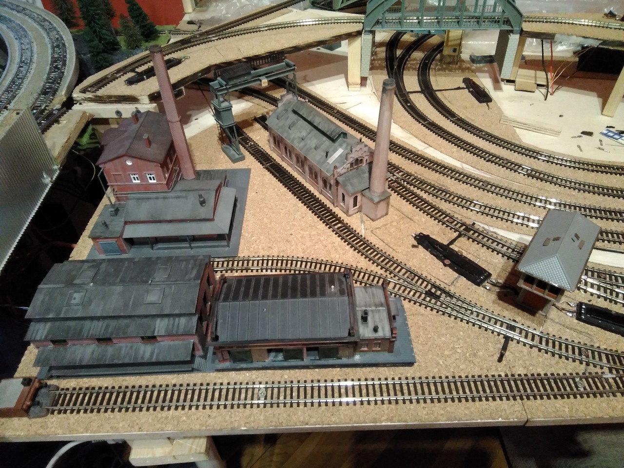 Fabryczno - magazynowy kawałek nowej części makiety. Pomału robię elektrykę (mechanizmy zamontowane, 4 podłączone) Idzie jesień można sobie dłubać.