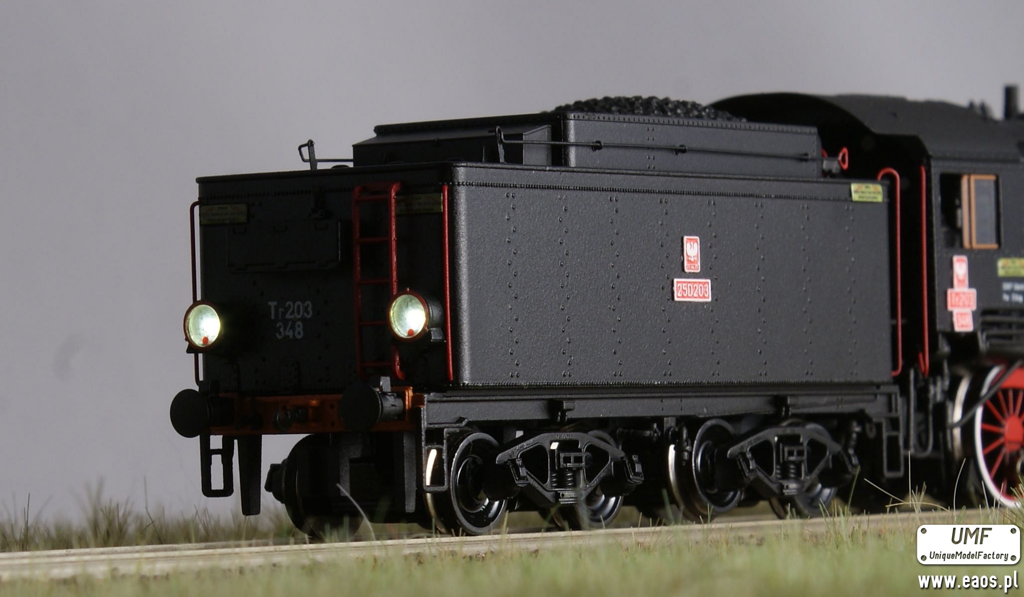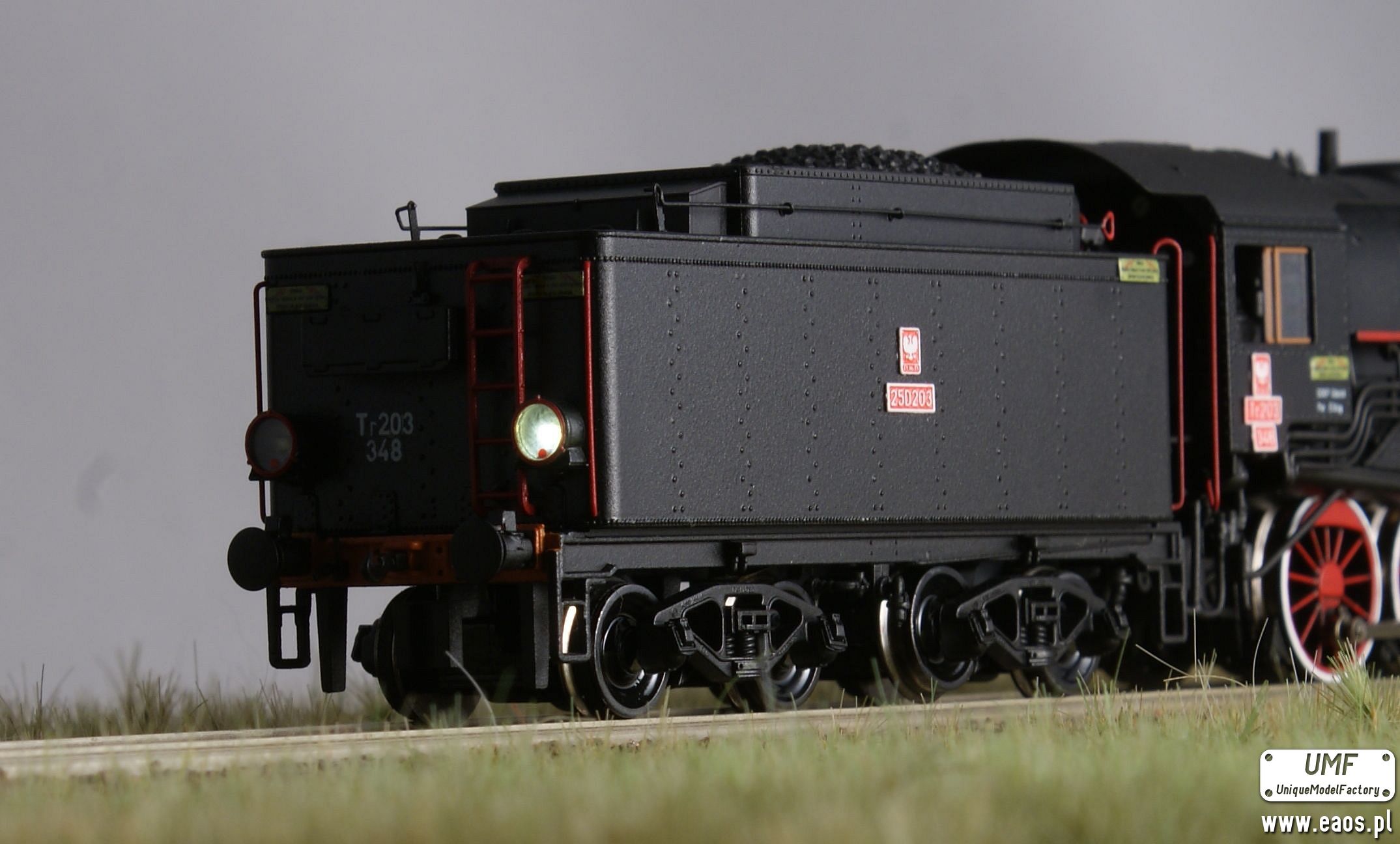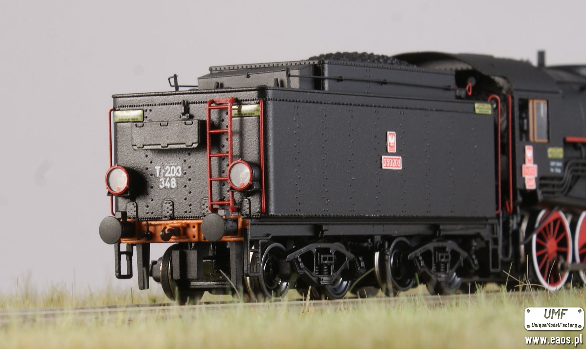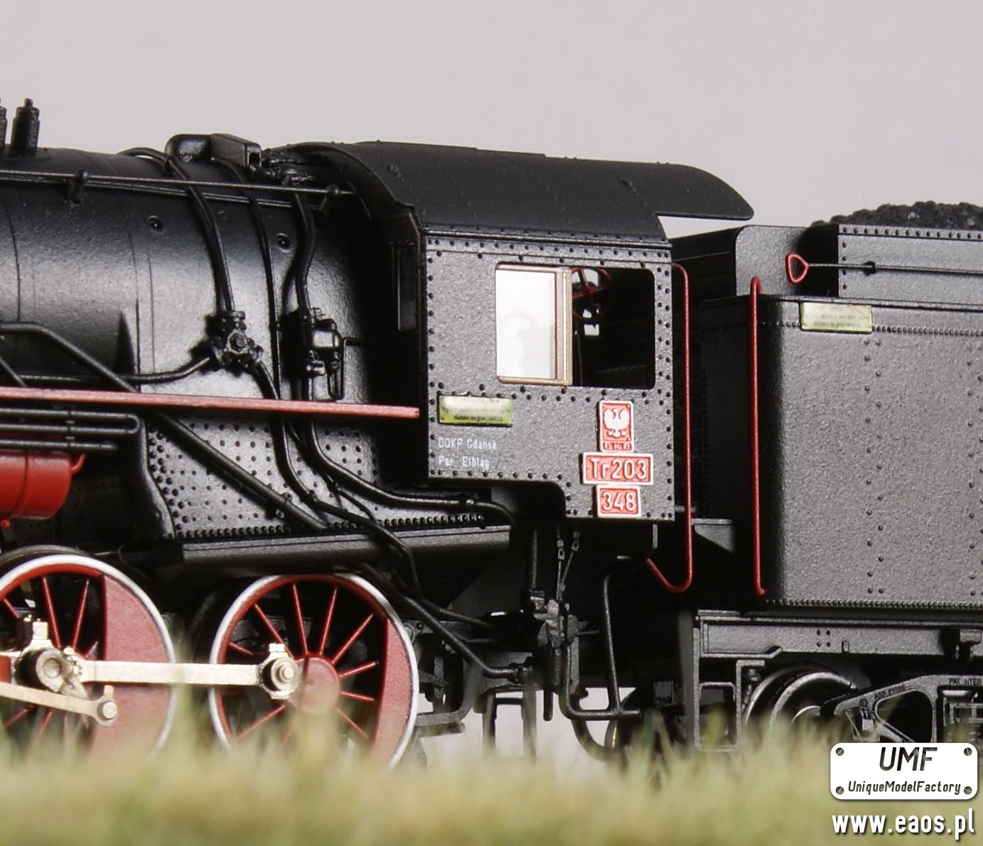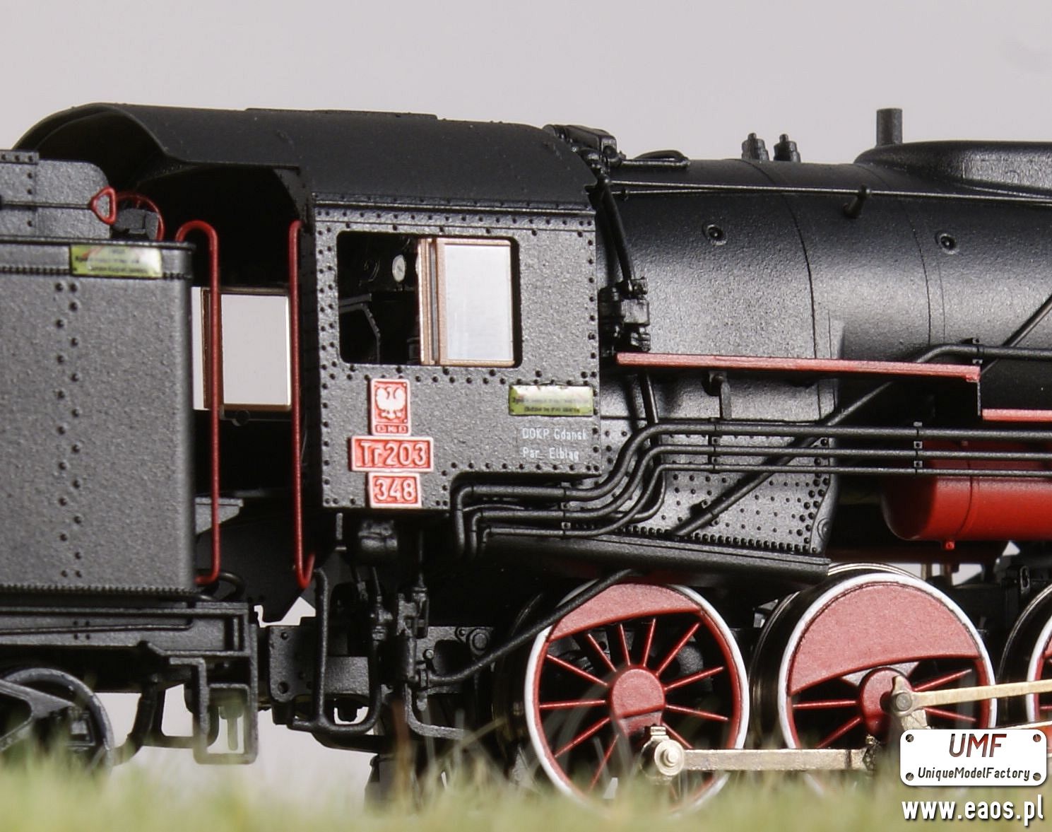 Tr203-348 inauguruje dodanie tej serii do naszej oferty konwersji parowozów. Model powstał na bazie S160 w kolorze szarym i bez oświetlenia. Taka konfiguracja uczyniła go ekstremalnie trudnym do konwersji gdyż trzeba było malować dosłownie każdą część.