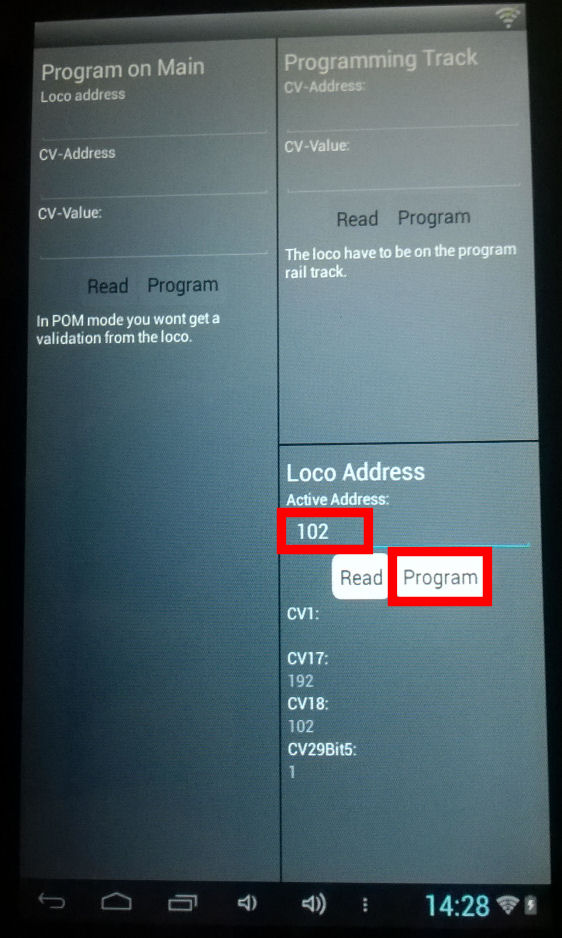 4. w polu "loco address" wpisac 7 i znów stuknąć palcem poza tym polem - powinien się pojawić komunikat "Success"