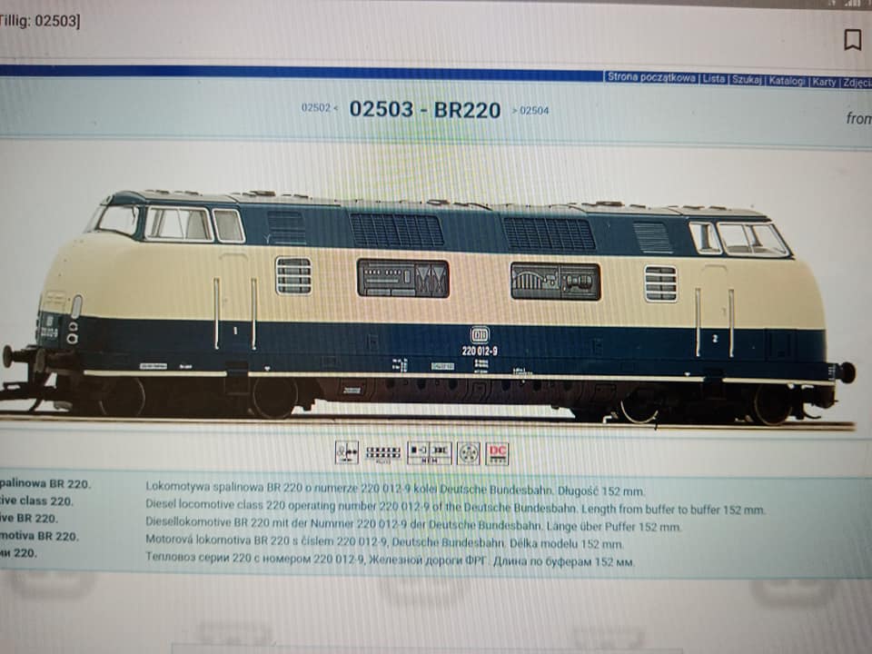 "Z serii model i oryginał. Tillig nr kat 02503 czyli BR 220 012. W eksploatacji od 1957r pierwsza szopa Hamburg. Wycofana w 1983r i sprzedana."