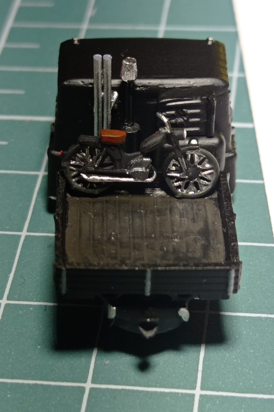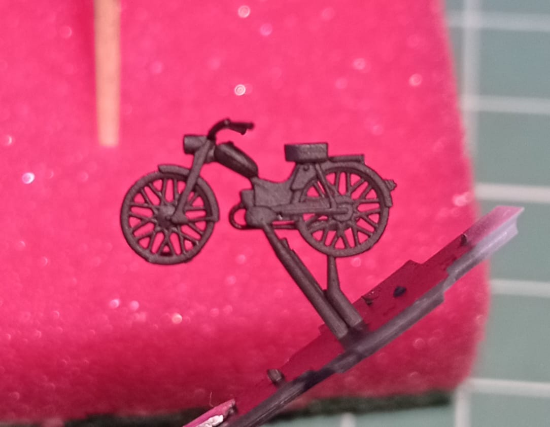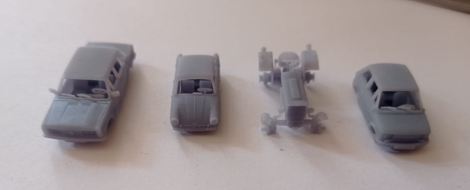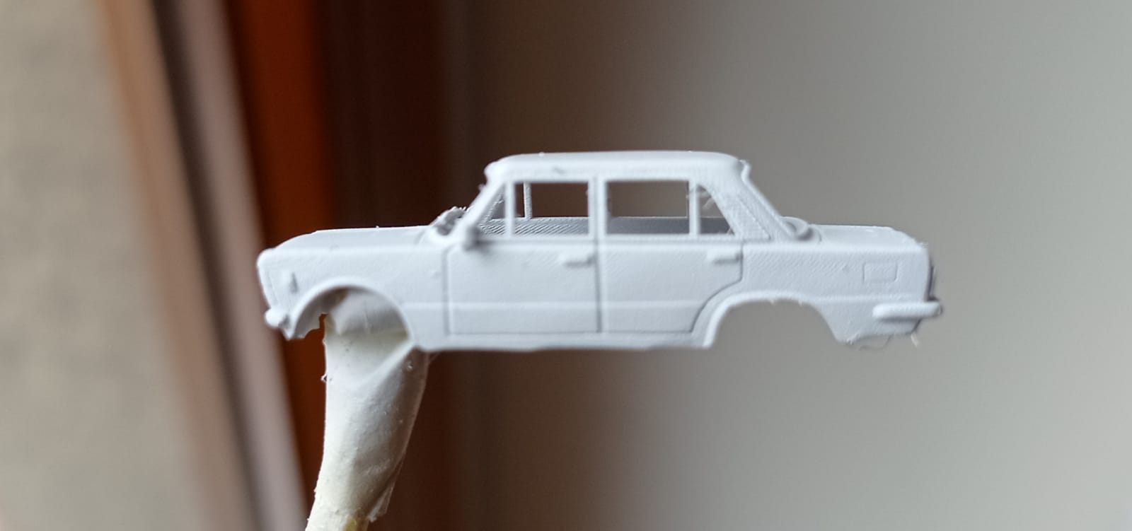 Ostrożnie podchodziłem do lusterek ale bez problemu dały się wyciąć. Model jest bardzo dobrze utwardzony. Wycinanie budy z jednej strony idzie szybko i sprawnie ale z drugiej trzeba odciąć najpierw dół bo jest pod dziwnym kątem i bałem się, że przejadę skalpelem po budzie. Po wycięciu widać raster ale bardzo drobny. Zobaczę jak dostanie podkladem. Powinno przykryć. Podwozie do budy jest dobrze spasowane. Szyby będę próbował po malowaniu wsadzić.