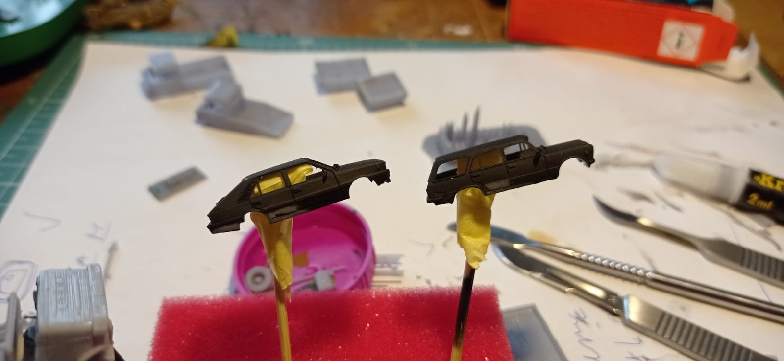 Nie wiem dlaczego ale w obu modelach trzeba było "dotknąć" 2000 po pomalowaniu podkładem w tym samym miejscu w obu dół drzwi i tył pod zderzakiem. Przy kolejnych będę wiedział aby od tego zacząć. Dach w fiacie pokryło ładnie. Zobaczymy jak będą skończone ...