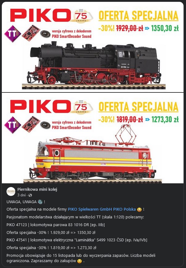 ArturSchŁ pisze: 25 paź 2024, 16:39Takie cóś mi się pojawiło: :arrow: https://www.facebook.com/piernikowaminikolej