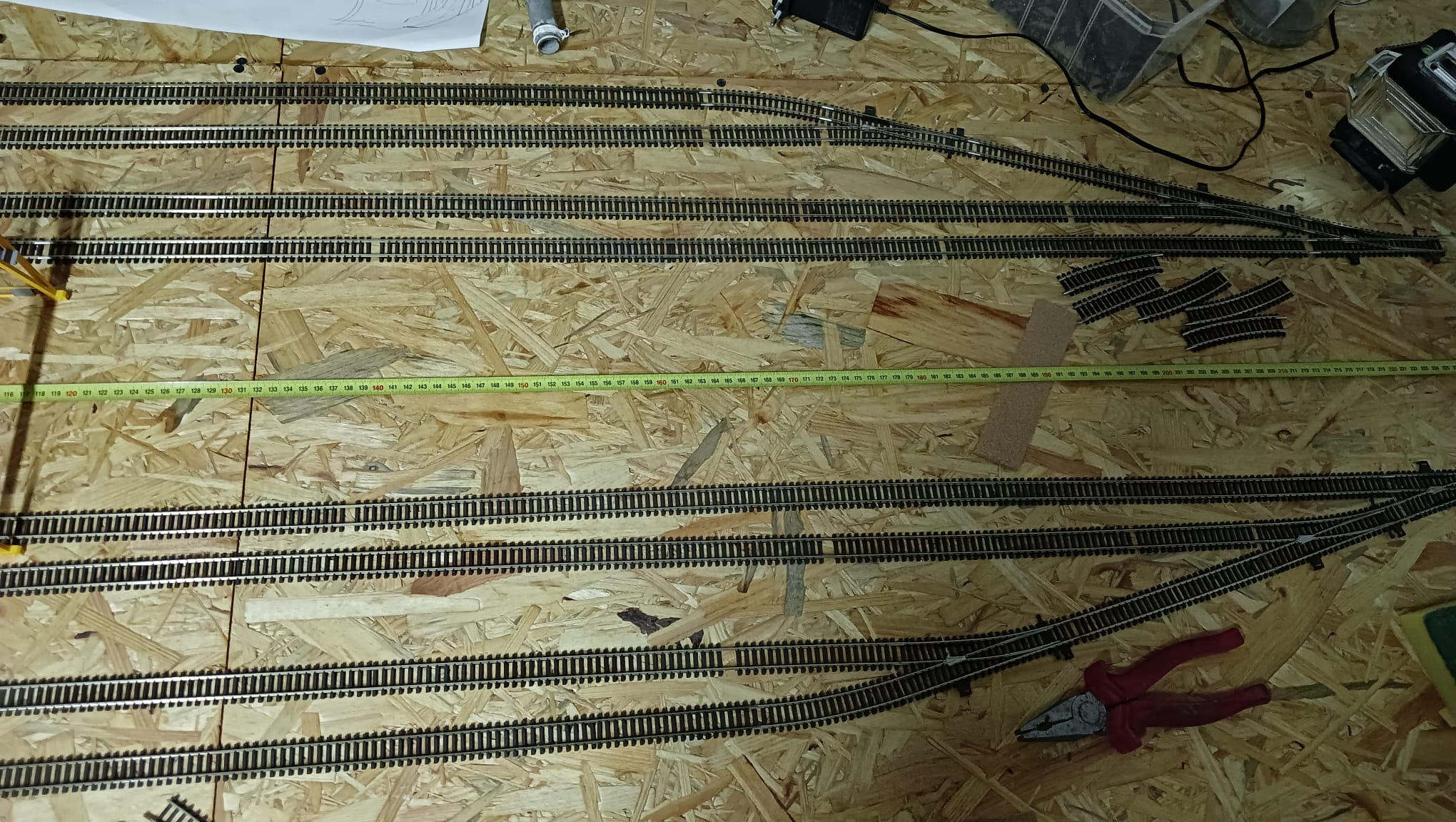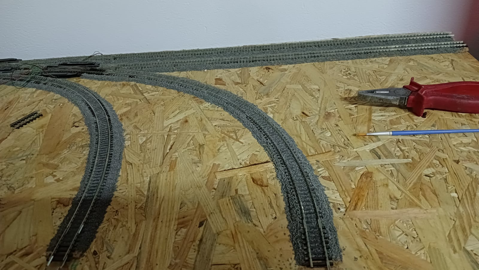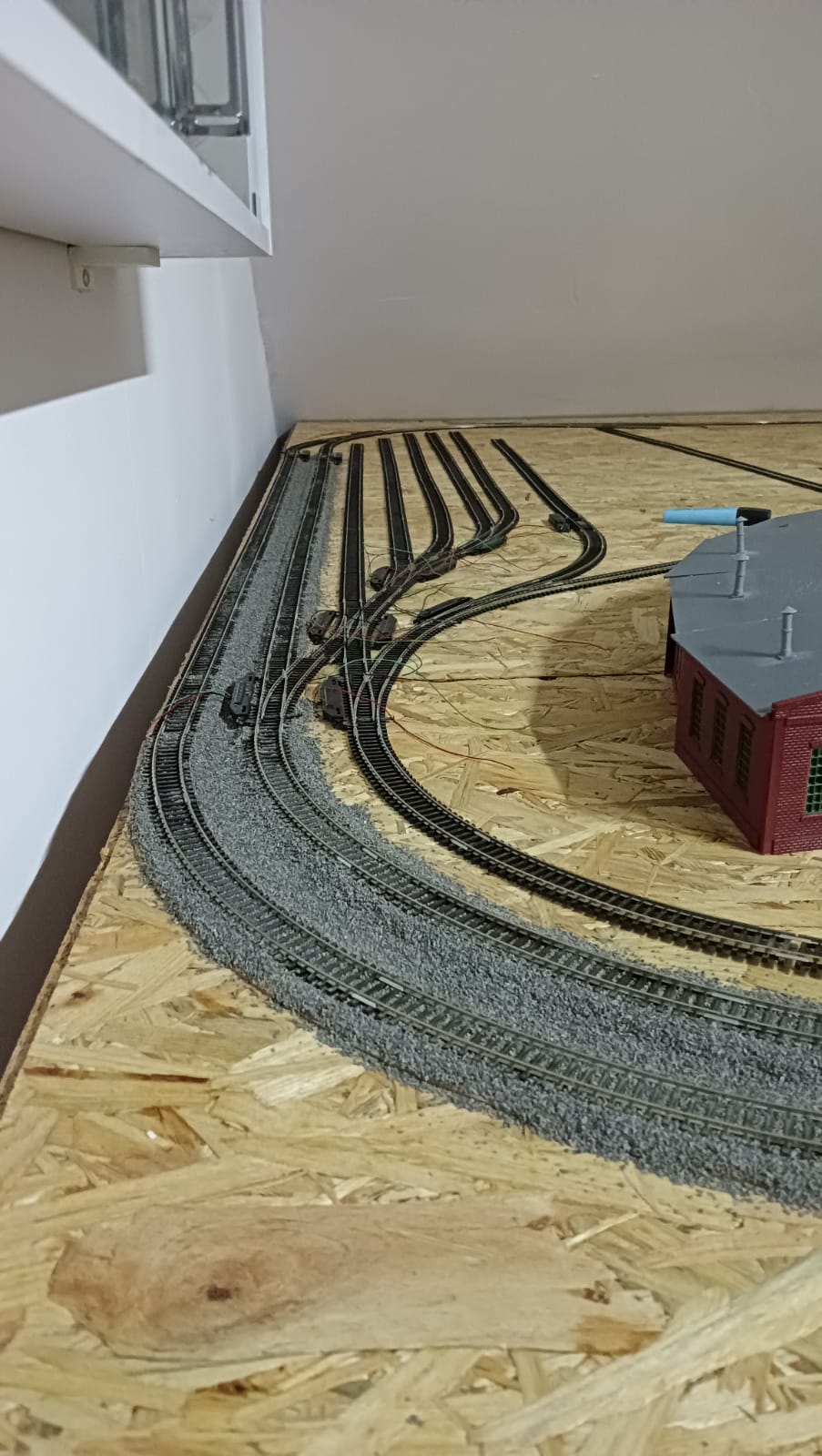 Prawie skończone tory stacyjne postojowe, i wyjazdowe ze stacji. Trochę to trwało ale okazało się że zoptymalizowalem ilość zwrotnic układając na nowo tory. Ubyło 7 napędów! Poniżej moje dotychczasowe dzieło:)