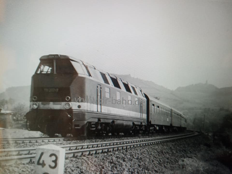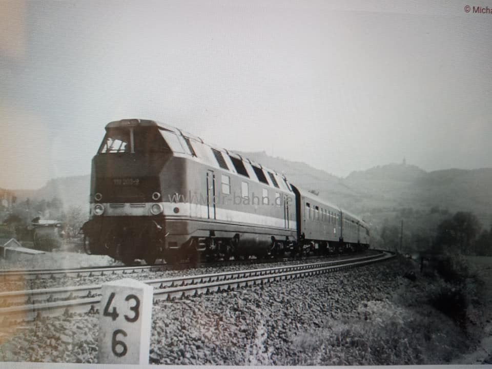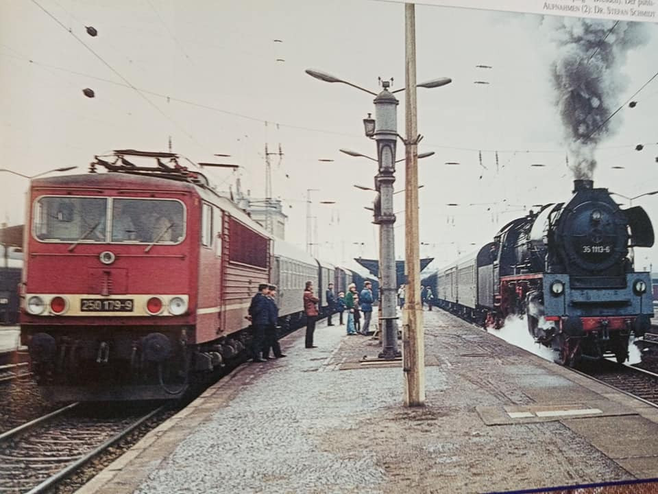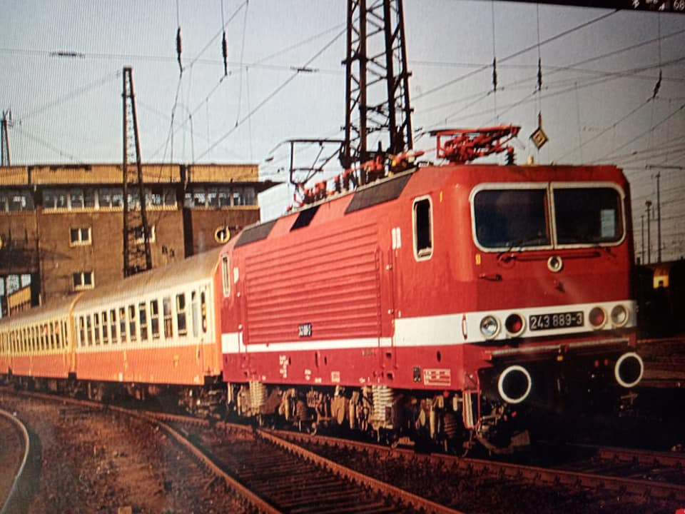 "Dziś skompletowałem skład w DR czyli stadtExpress kolejny czyli z drugiej połowy lat 80tych. Halberki przedziałowe z barem reko. Z Berlina do Lipska długi skład przyjechał z elektrykiem, natomiast po urwaniu części składu połowa po zmianie kierunku jazdy odjedzie do Gery z Ludmiłą na czole."