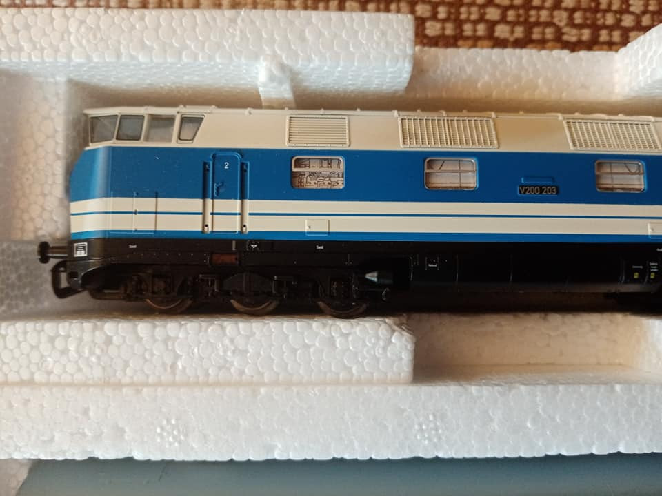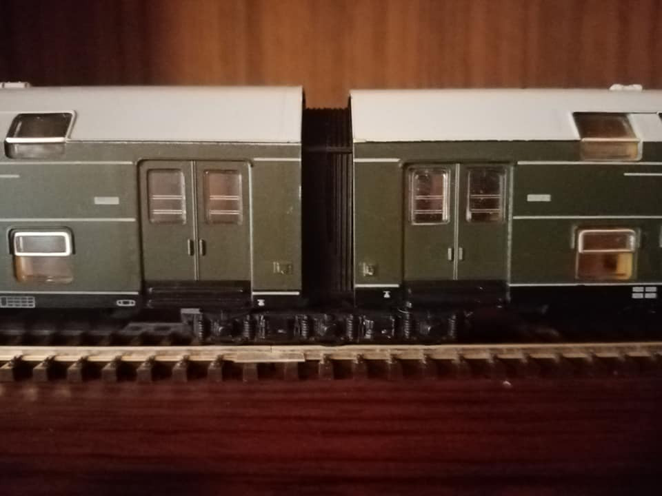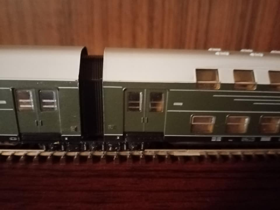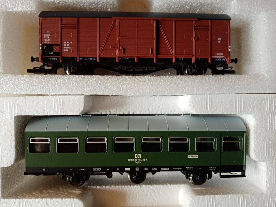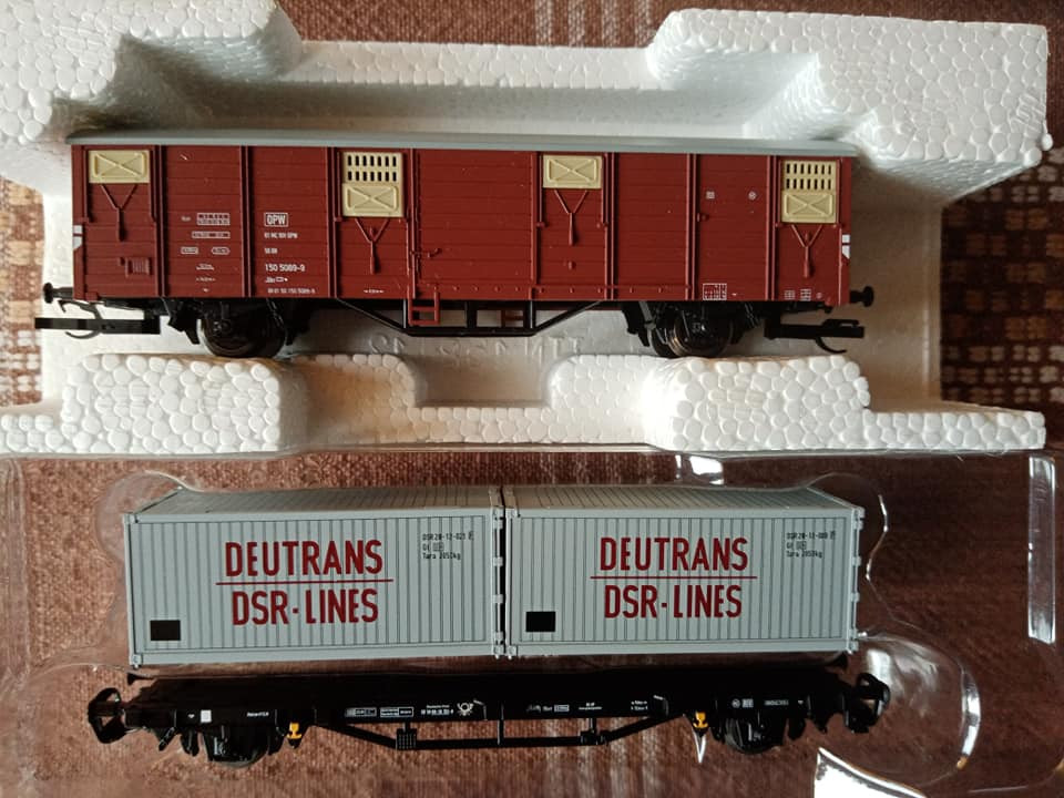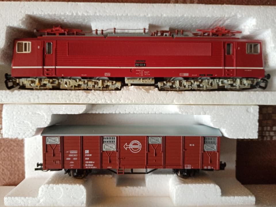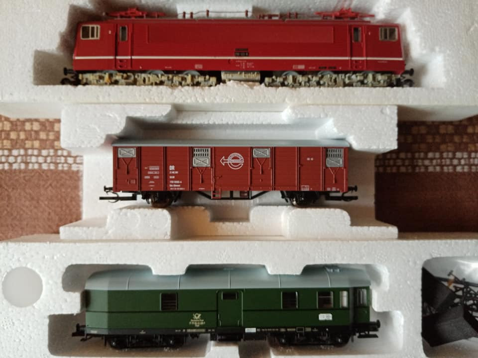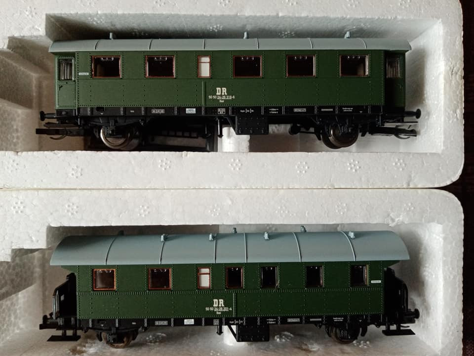 "Dziś pojedzie nietypowy skład i rzadki, ale jak na czwartą epokę przystało to charakterystyczny i planowy. Odpowiednik lopka PKP czyli w NRD typu Gex jako pocztowy z przesyłkami. Na makietę bardzo wdzięczny bo z różnymi wagonami w składzie ożywia krajobraz. Są też pomocnicze wagony towarzyszące jak typu E5. Na oryginalnej fotce pociąg typu Gex z seria 250 przy peronie obok maszyny Br35."