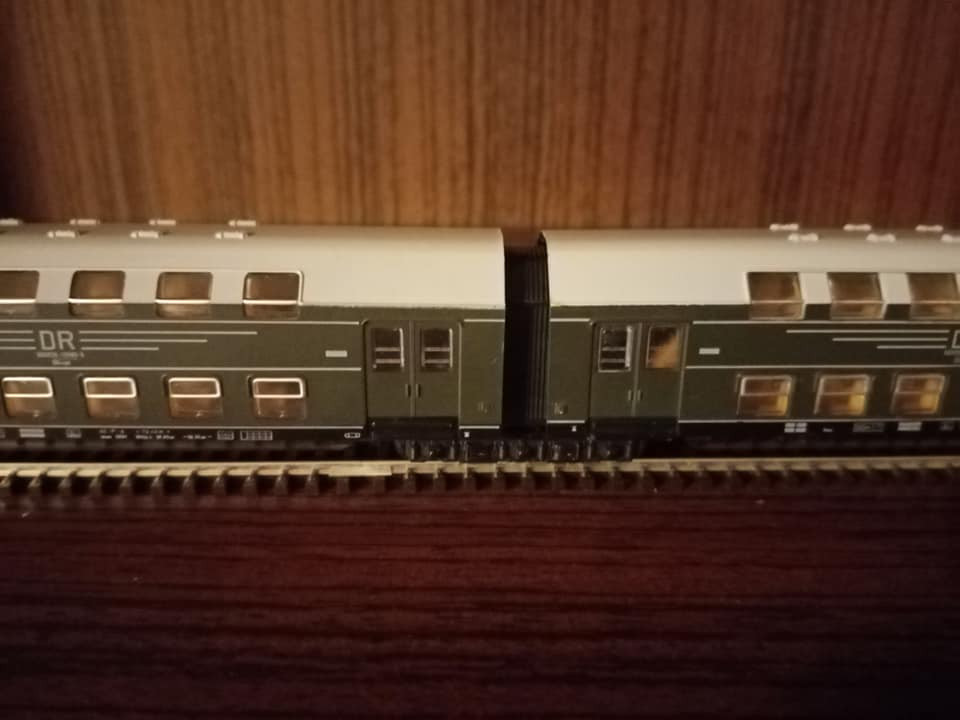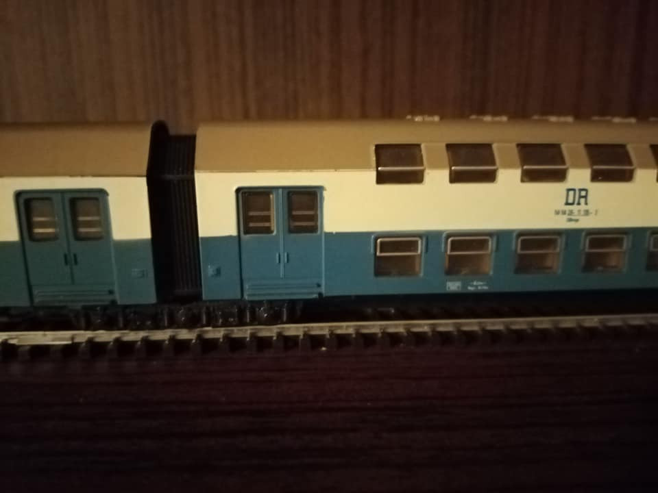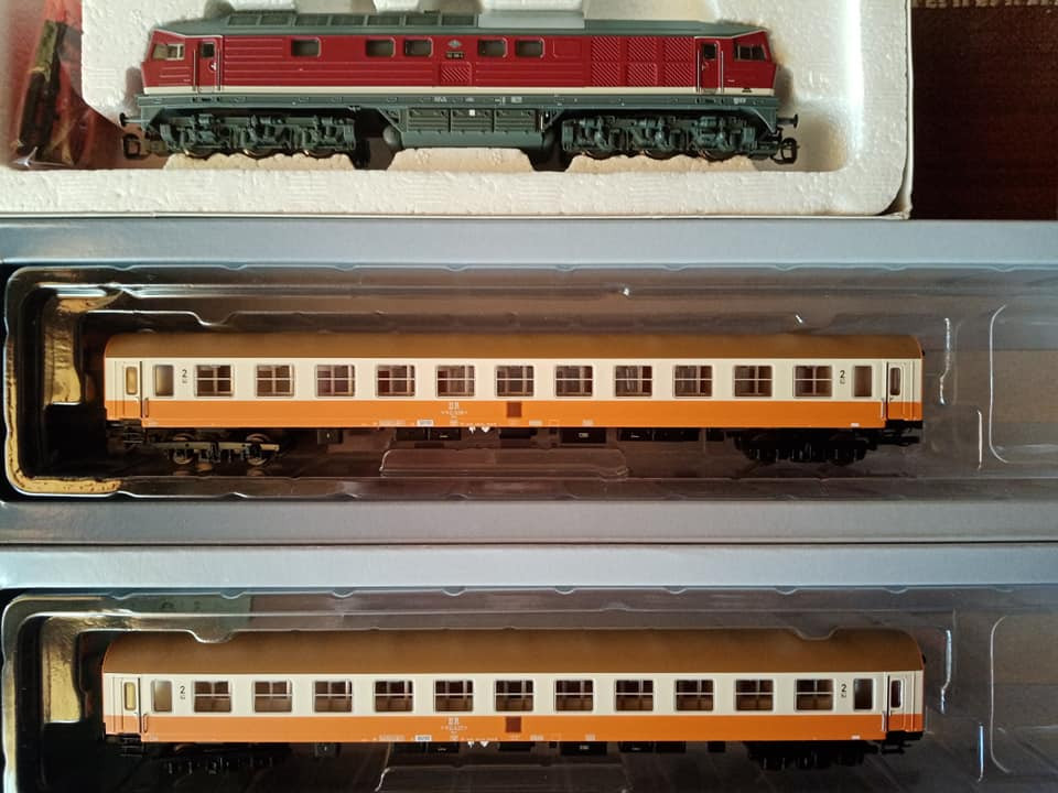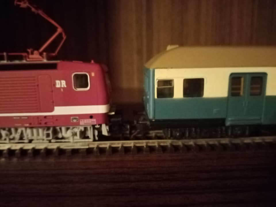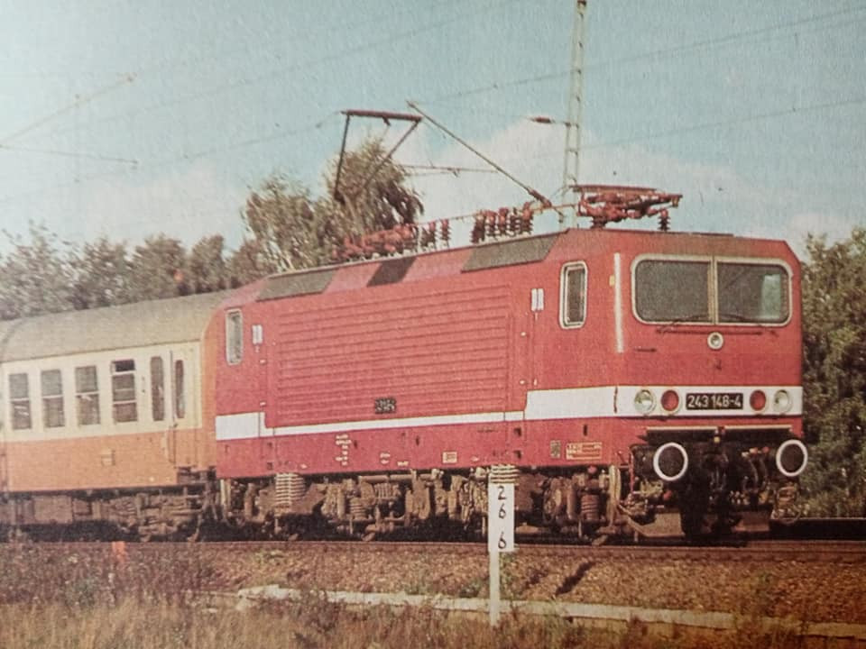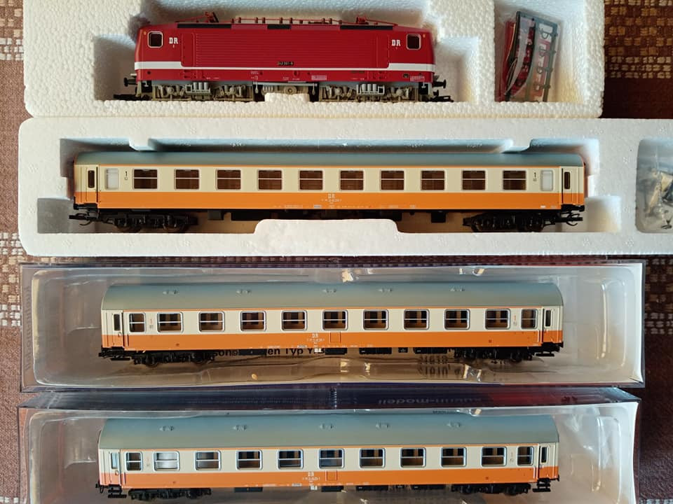 "Jeszcze raz set miejskiego expresu z epoki czwartej. Tym razem po przyjeździe do Lipska z Gery części pociągu z Ludmiłą i dodaniu części Lipskiej pełny skład wyruszy do Berlina Wsch z najnowszym ich elektrykiem serii 243. Fotki oryginału wiadomo propagandowe, ale ukazują modę tamtych lat. Skład ma jedną wadę. Nadaje się raczej na klubowe makiety. W zaciszu domowym jest gorzej. Na zlocie TT w Sopocie kilka lat temu jeździł skład stadtExpress składający się z 15tu Ygrekow. Pięknie się prezentował u kolegów. Pozdrawiam wszystkich co mają wolne, co pracują normalnie czy zdalnie i życzę miłego dnia."