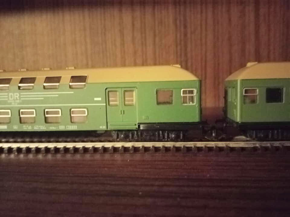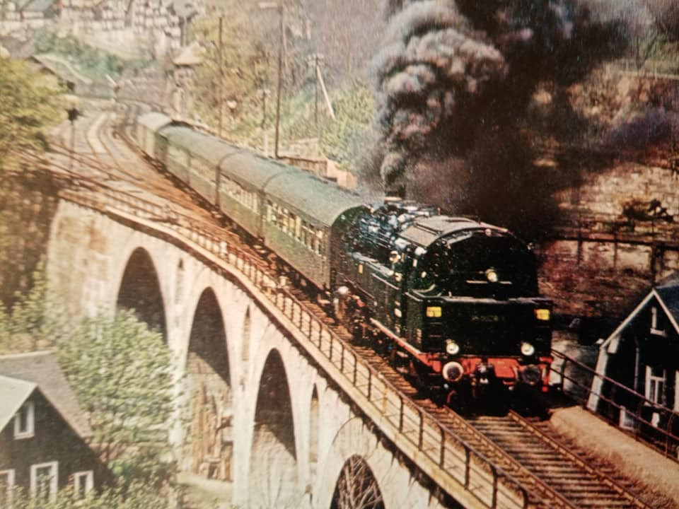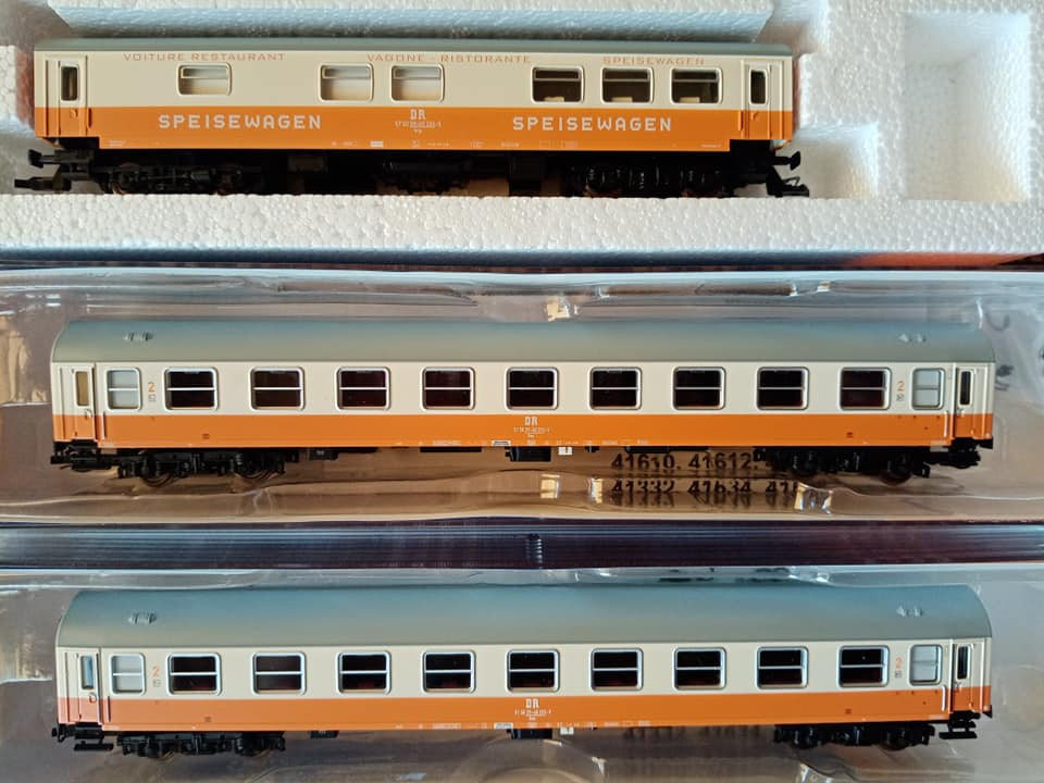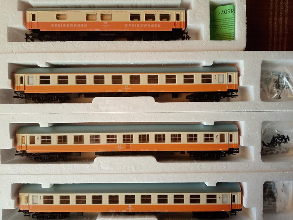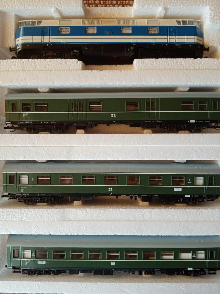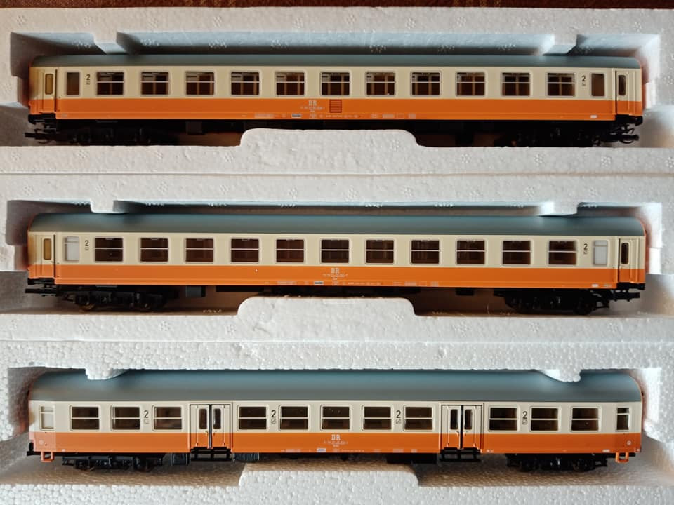 "Jeszcze raz set miejskiego expresu z epoki czwartej. Tym razem po przyjeździe do Lipska z Gery części pociągu z Ludmiłą i dodaniu części Lipskiej pełny skład wyruszy do Berlina Wsch z najnowszym ich elektrykiem serii 243. Fotki oryginału wiadomo propagandowe, ale ukazują modę tamtych lat. Skład ma jedną wadę. Nadaje się raczej na klubowe makiety. W zaciszu domowym jest gorzej. Na zlocie TT w Sopocie kilka lat temu jeździł skład stadtExpress składający się z 15tu Ygrekow. Pięknie się prezentował u kolegów. Pozdrawiam wszystkich co mają wolne, co pracują normalnie czy zdalnie i życzę miłego dnia."