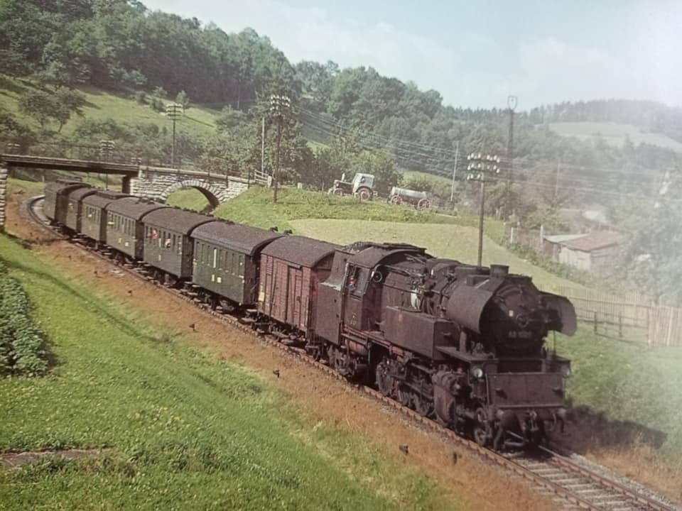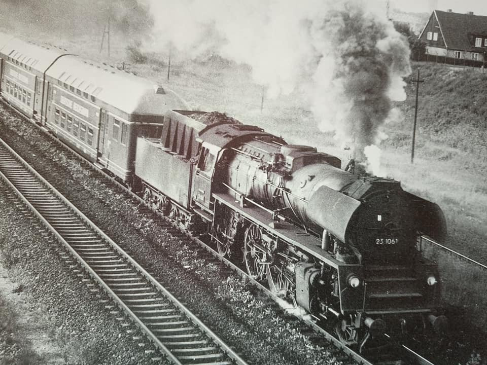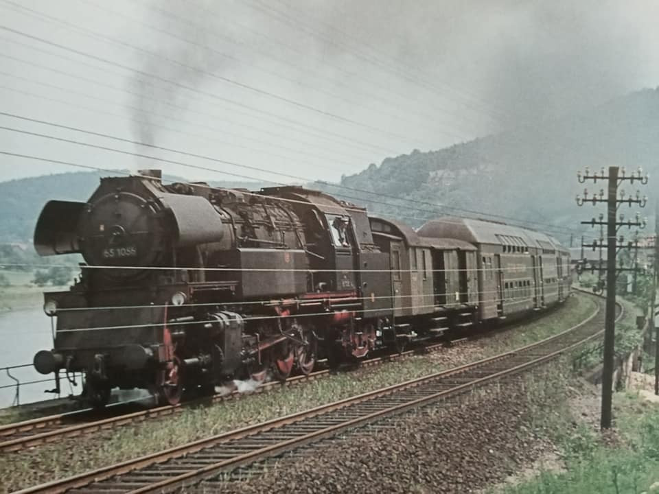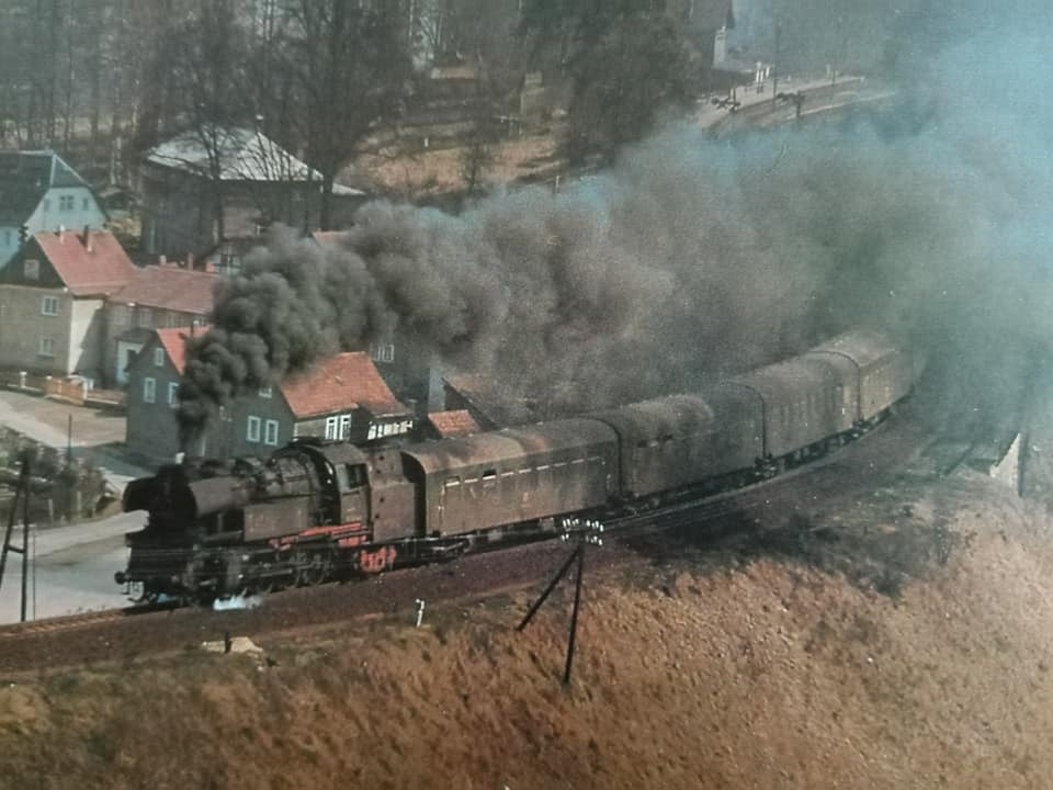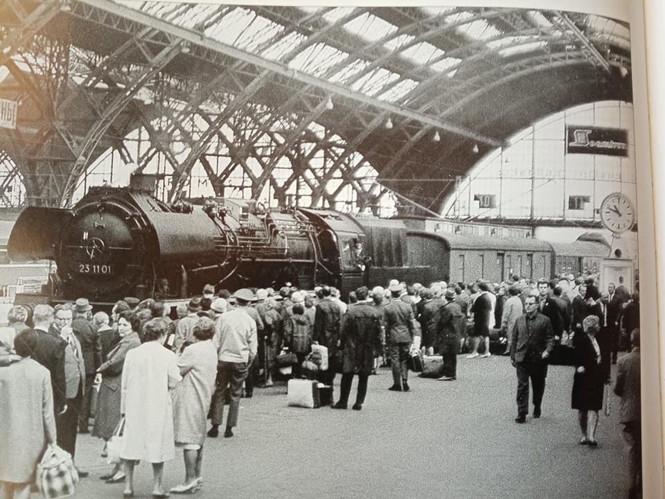 "Trochę wspomnień 35ka BTTB swego czasu obiekt westchnień, model na tamte lata praktycznie do każdego pociągu na dywanie czy makiecie torcie. Na oryginalnej fotce z Bipą klasyczną na trasie. Końcówka trzeciej ep. Druga fotka dworzec Lipsk i ciężki skład osobowy z Drezna do Wernigerode wtaczający się w peron. W składzie oprócz dwóch wagonów bagażowych podwójny gliderzug jako model Kresa. Podobnie jak na PKP tłum ludzi oczekujących na peronie w tłustych latach przewozowych. 1967r."