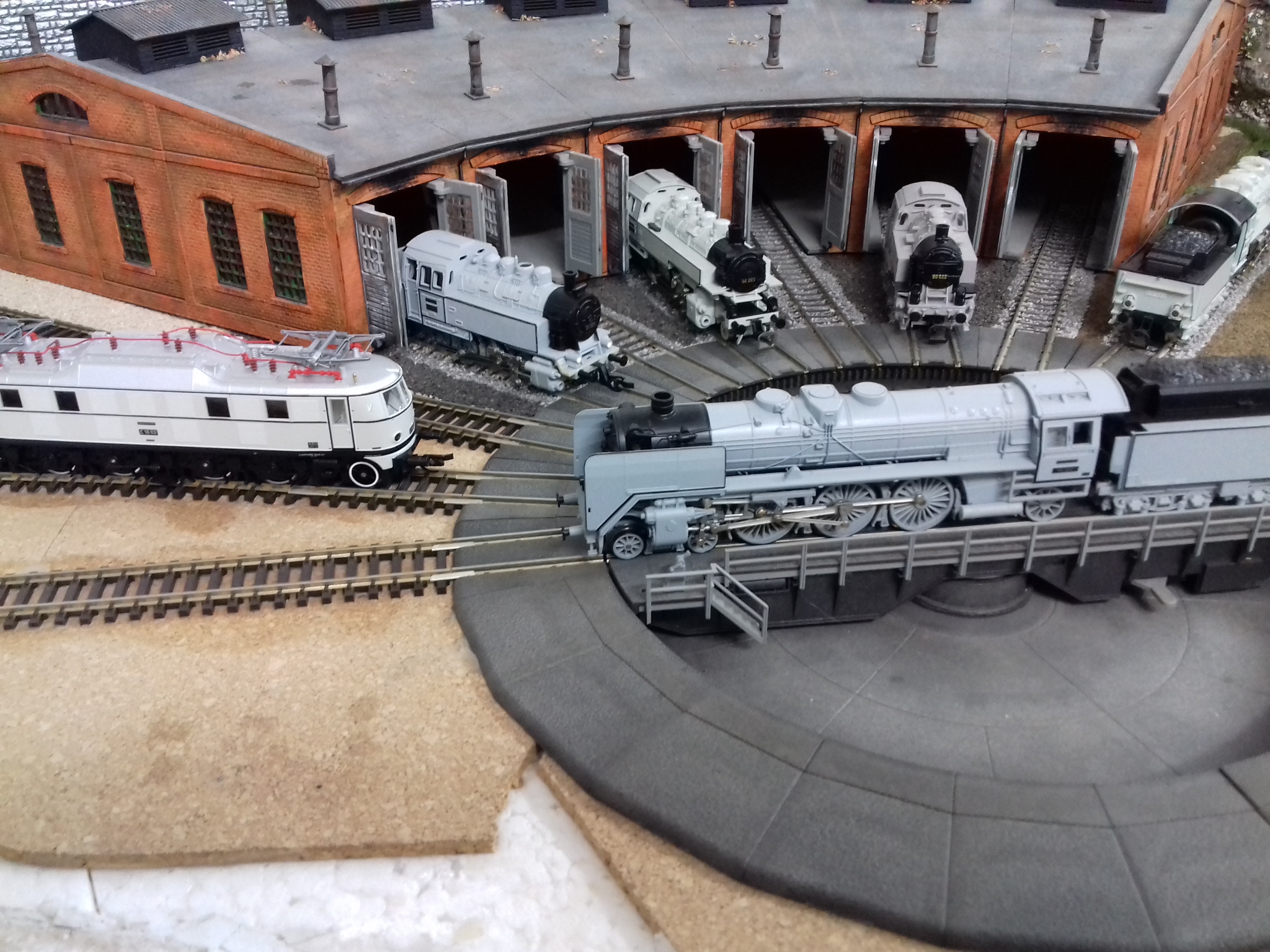 Szykowanie lokomotyw do fotografa i czekanie na jeszcze 2 w trakcie malowania.
